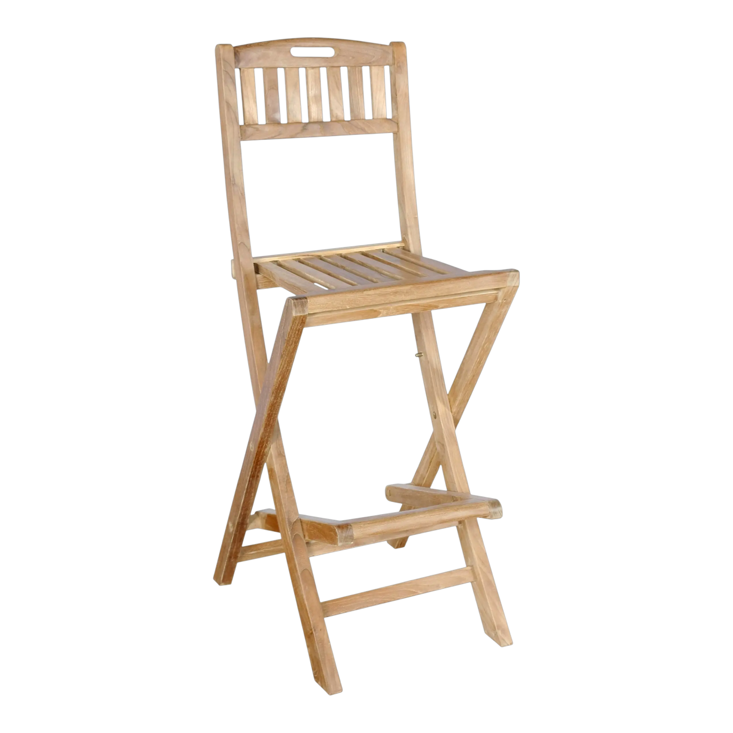 The Altavista Folding Bar Chair is the perfect teak bar patio furniture for the yard and outdoors. Designed from premium solid teak wood, it is kiln-dried and sanded smooth without finish in its natural form and color. With no assembly required, it can be easily folded and stored away when not in use allowing for easy movement. Add Sunbrella All-Weather fabric and cushions for more comfort, or add an outdoor teak bar table from Anderson Teak’s numerous collections for an outdoor bar set.