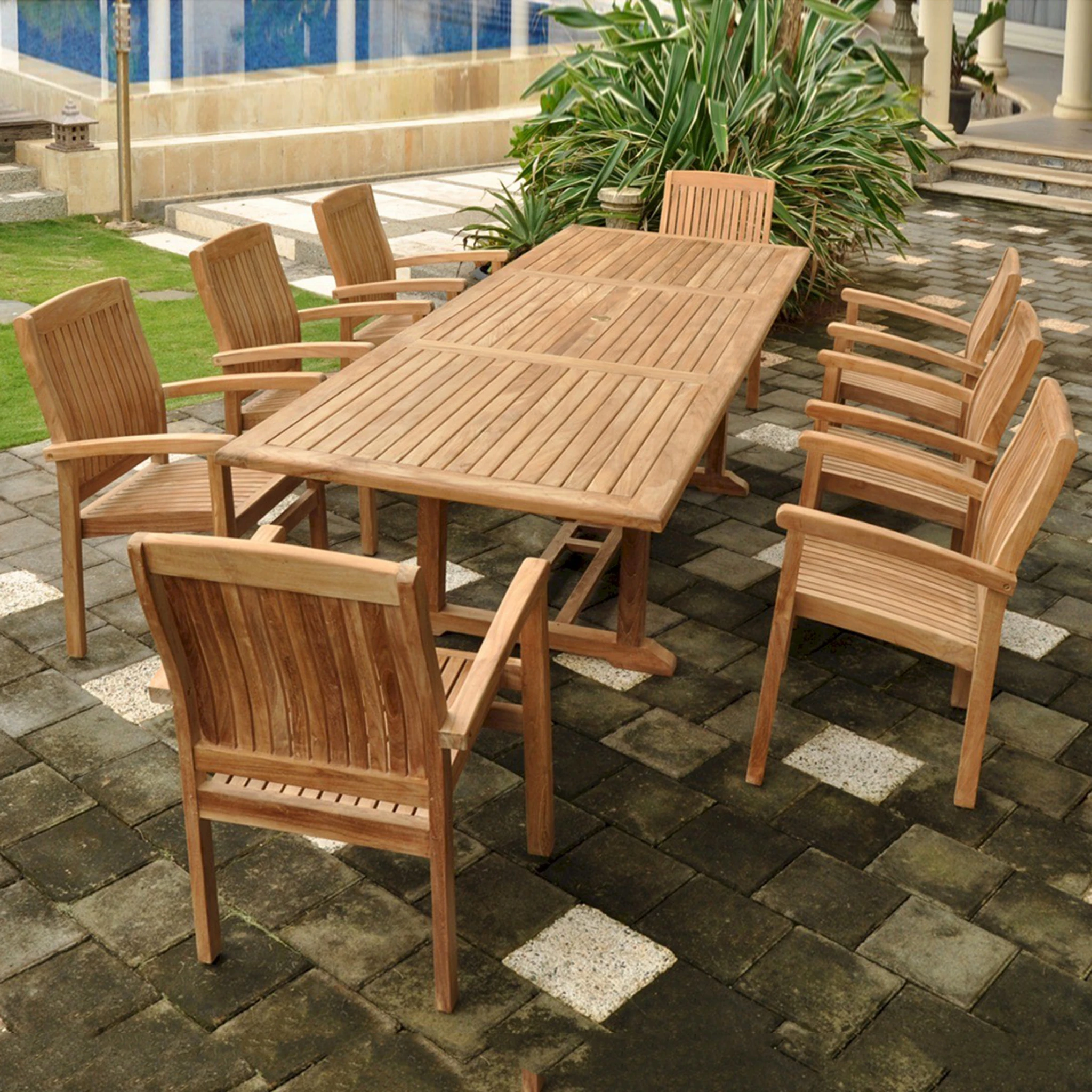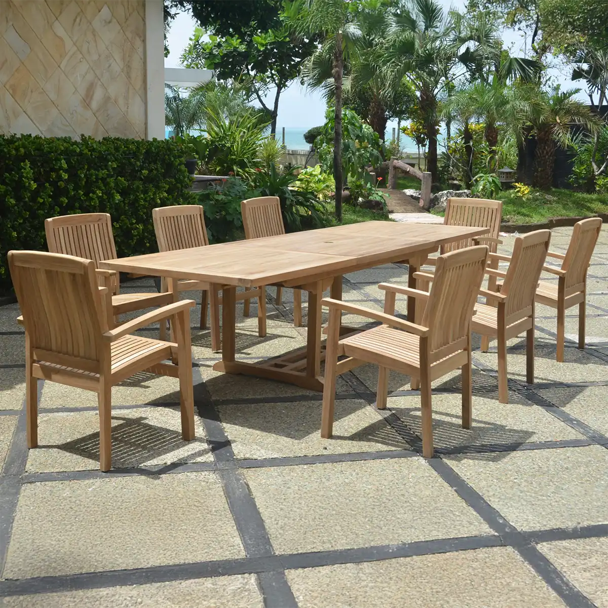 Anderson Teak – Bahama Stackable Sahara 9-Pieces Rectangular Dining Set A