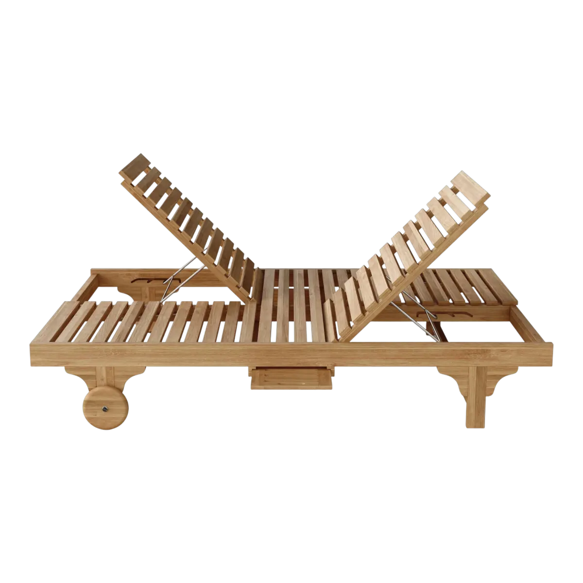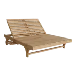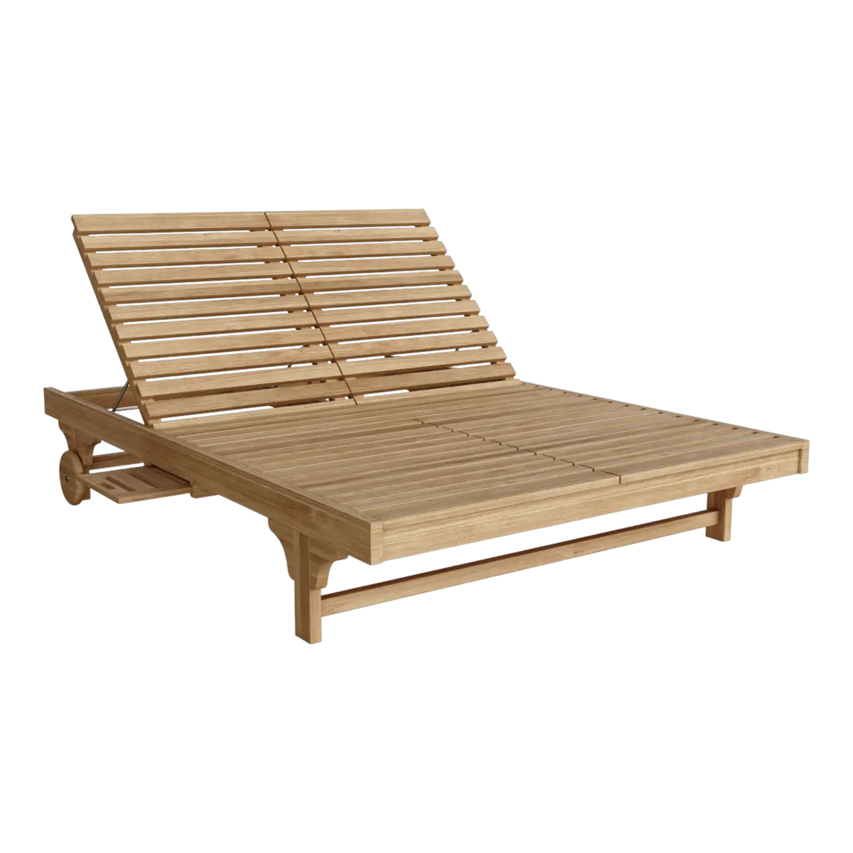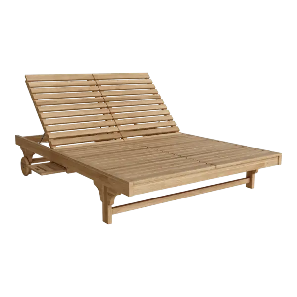 If your ultimate idea of relaxation is to be with your partner by the pool on a hot summer day – then the Bel-Air Double Lounger is for both of you. This double lounger accommodates two, side by side or opposing. Unlike others, you can lay down face-to-face chatting with your partner. It has solid brass fittings, side trays and wheels for maneuverability. Be sure to add cushions from All-Weather Sunbrella Fabrics, available in many colors. Set Arrives with two Bel-Air Double Sun Loungers. Made of unfinished premium grade authentic teak.