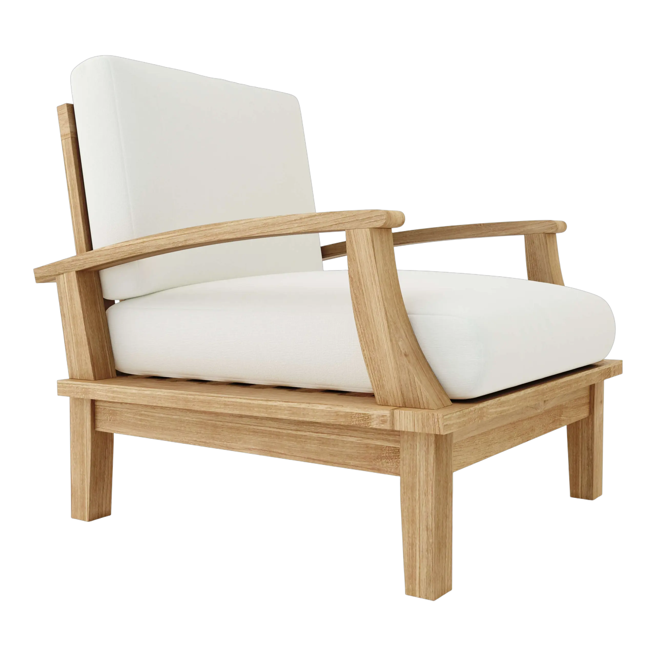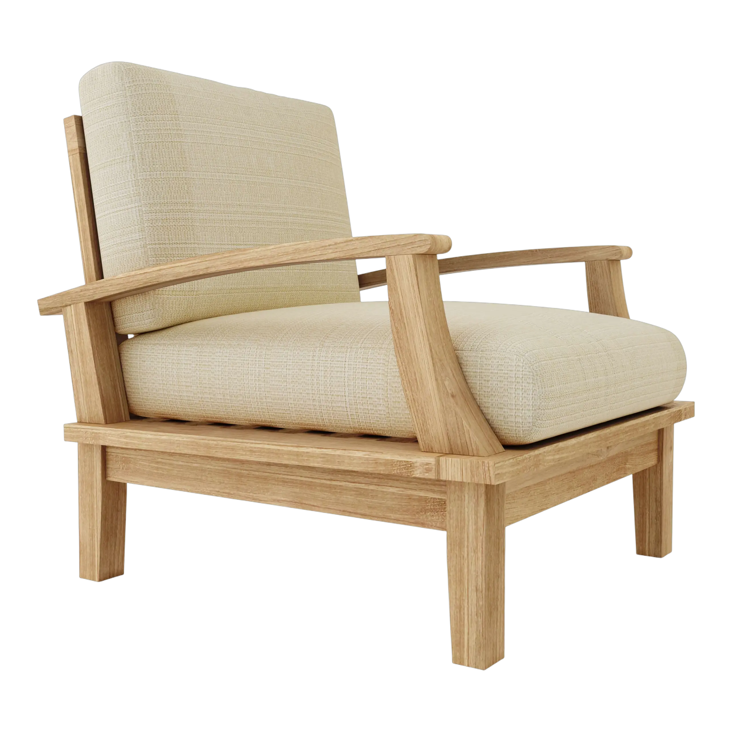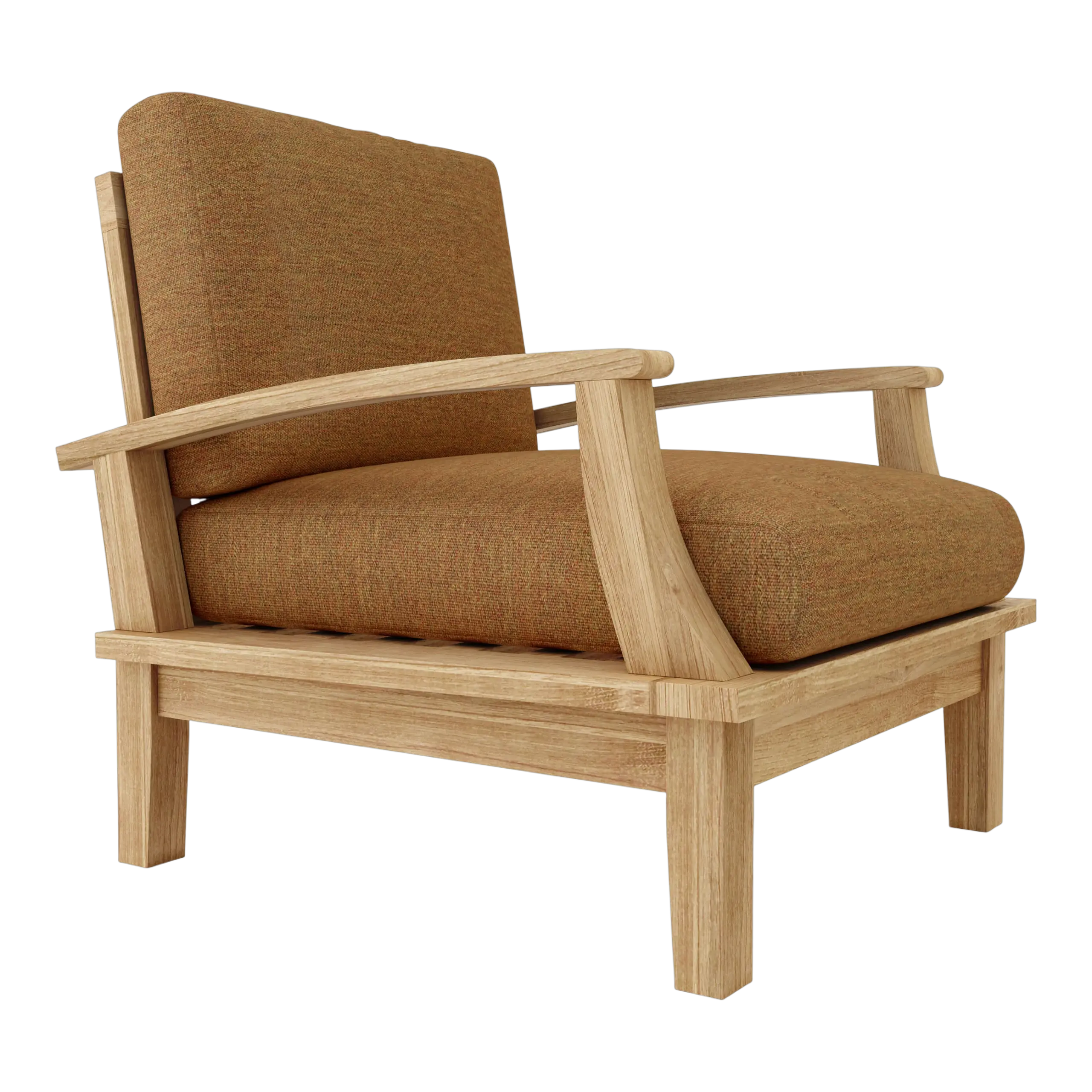Brianna Deep Seating ArmchairTeak WoodEstimate weight capacity: 300 lbsAnderson Teakcomfortable cushions that will last outdoors without mildew, and minimal discoloration.QuickShip Cushions available in Natural, Burgandy, JockeyRed, Teak, Navy, Linnen Antique Beige, Linen Champagne, & Forest Green (1 week faster)Custom Order Cushions available in 36 colors from SunbrellaTeak outdoor furniture with premium quality products. Â