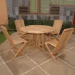 1 TBF-047BR 47″ Round Butterfly Folding Table4 CHF-301 Comfort Folding ChairTeak WoodCushion is not includedMade with kiln-dried, grade A teak wood.Cushions (optional) are made of Sunbrella fabric, a water repellent material, preventing mildew and fadingInner cushion is made of foam with a Dacron wrap. Total thickness is 2″QuickShip Cushions available in Natural, Burgandy, JockeyRed, Teak, Navy, Linnen Antique Beige, Linen Champagne, & Forest GreenCustom Order Cushions available in 36 colors from Sunbrella