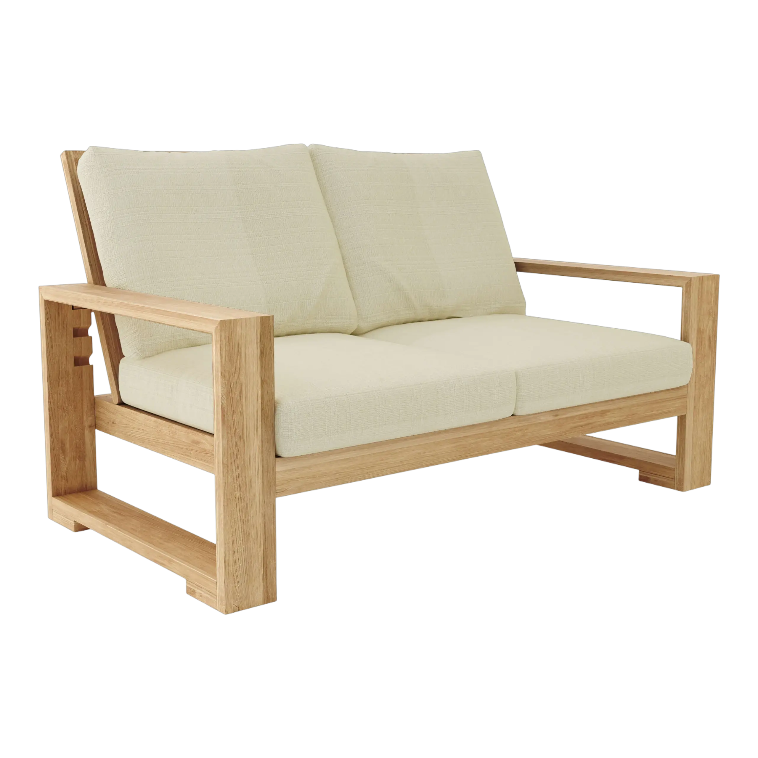 The Capistrano Deep Seating Loveseat comfortably sits two and is the perfection addition for your backyard or inside your home. With its spaciously modern, elegant, and comfortable teak design, you can be sure to entertain guests, family, and friends over a good time. Add other pieces from the collection such as ottomans, coffee tables, or mix and match with the Capistrano Armchair, Capistrano Sofa, and the Capistrano Side Table. Arrives with Sunbrella Cushions 6″ thick made to last outdoors without mildew and minimal discoloration, it arrives knocked down with easy assembly. Back support easily adjustable to four positions. Please consult with your Sales Representative for cushion color choice.