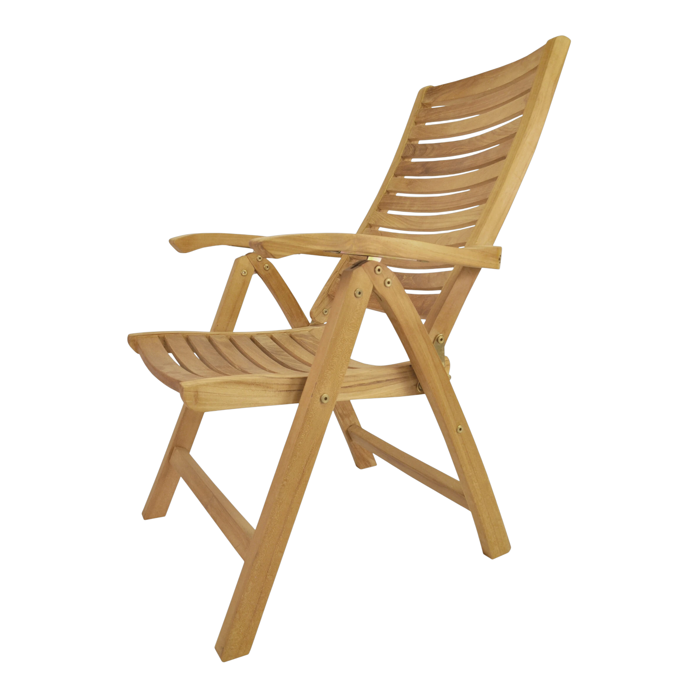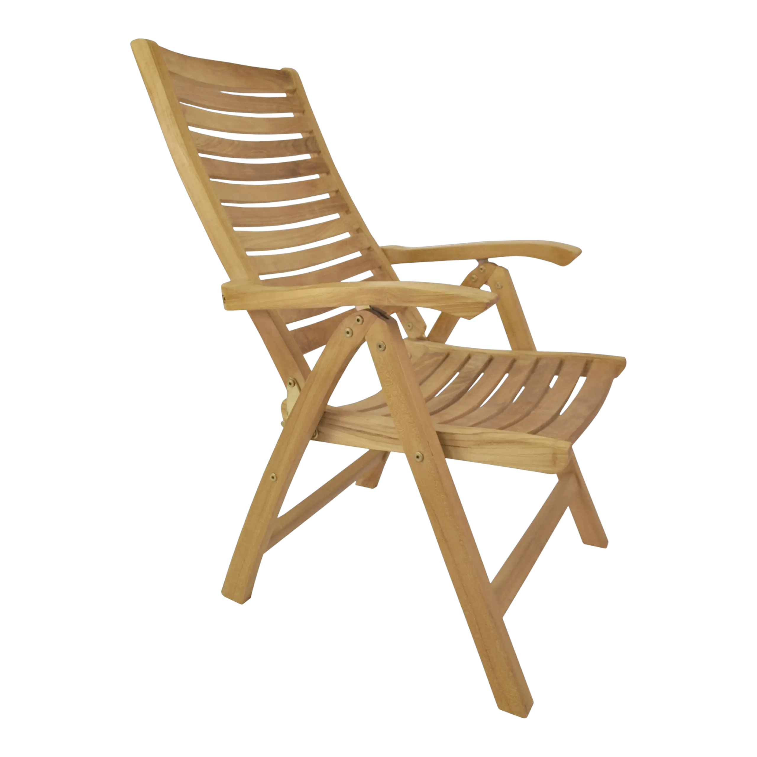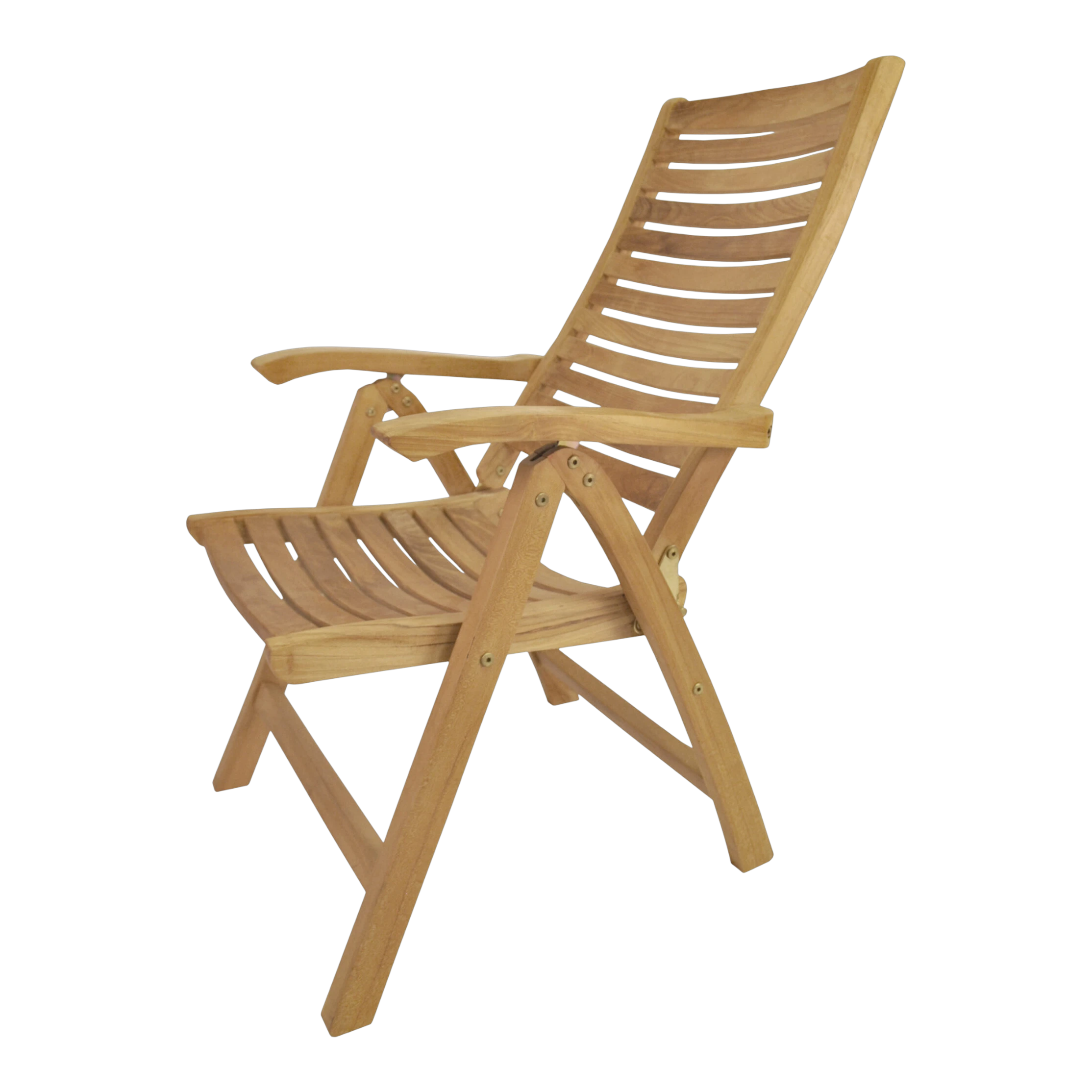 The Carina Five-Position Reclining Chair is easily adjusted from an upright dining position to a relaxed reading position to a reclined position to suit your pleasure. The chairs also folds easily for moving and storing so you can accommodate guests when you need to and hide the set when you don’t. With a 5-position adjustment, our recliners are very comfortable and versatile. A simple ratchet action makes adjustment quick and easy. Made from genuine grade teak, it is sanded smooth without any finish in its natural form and color.