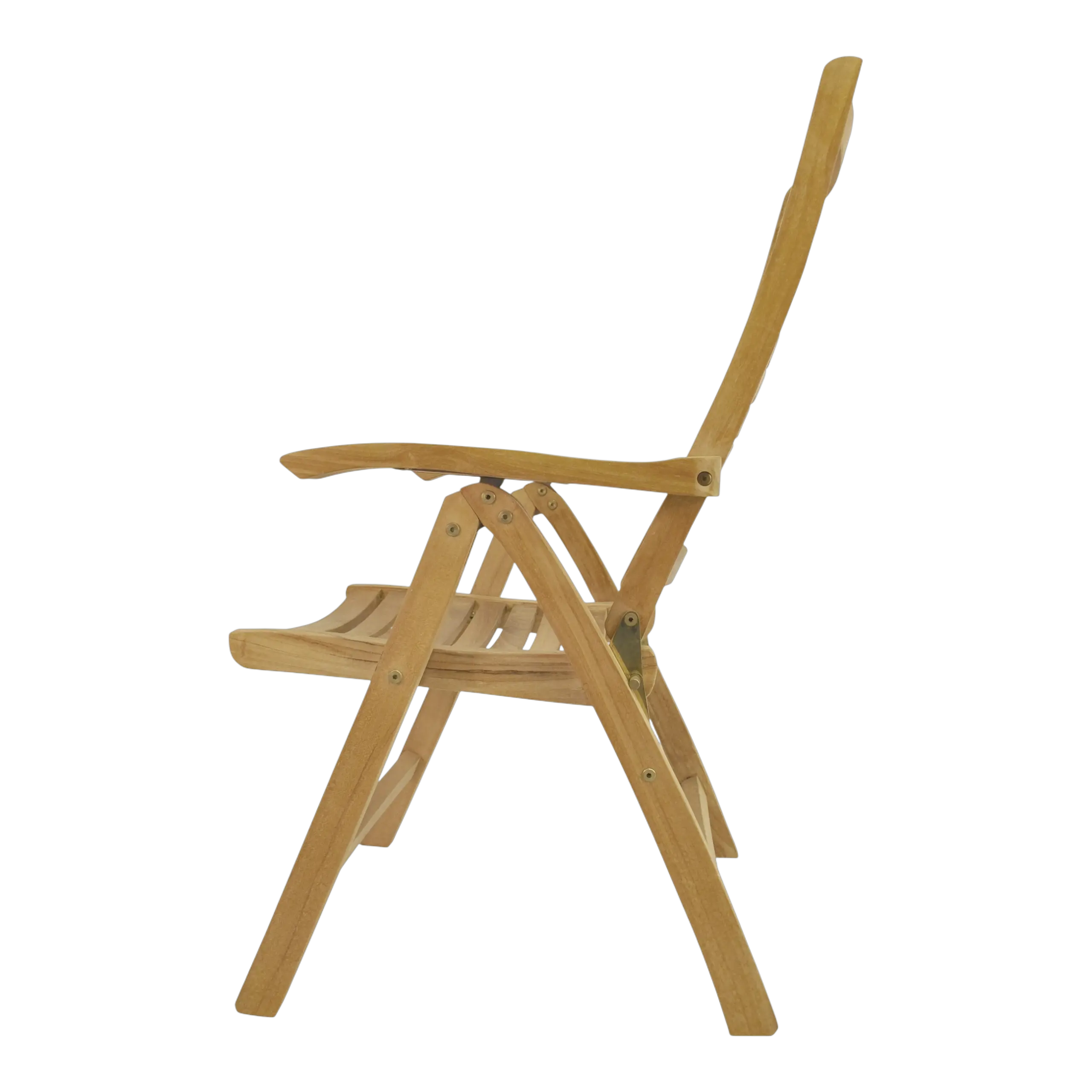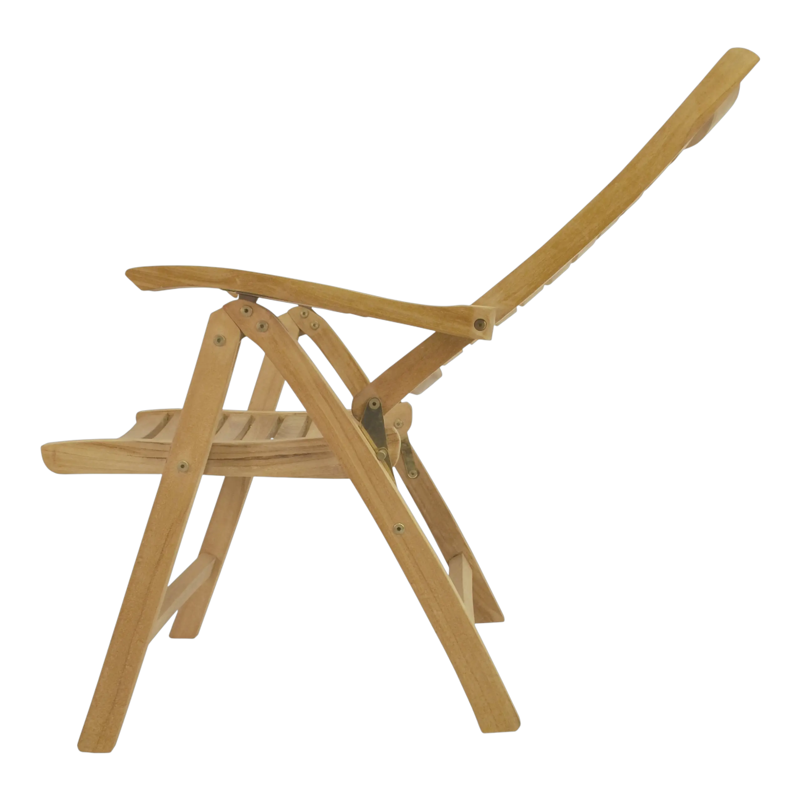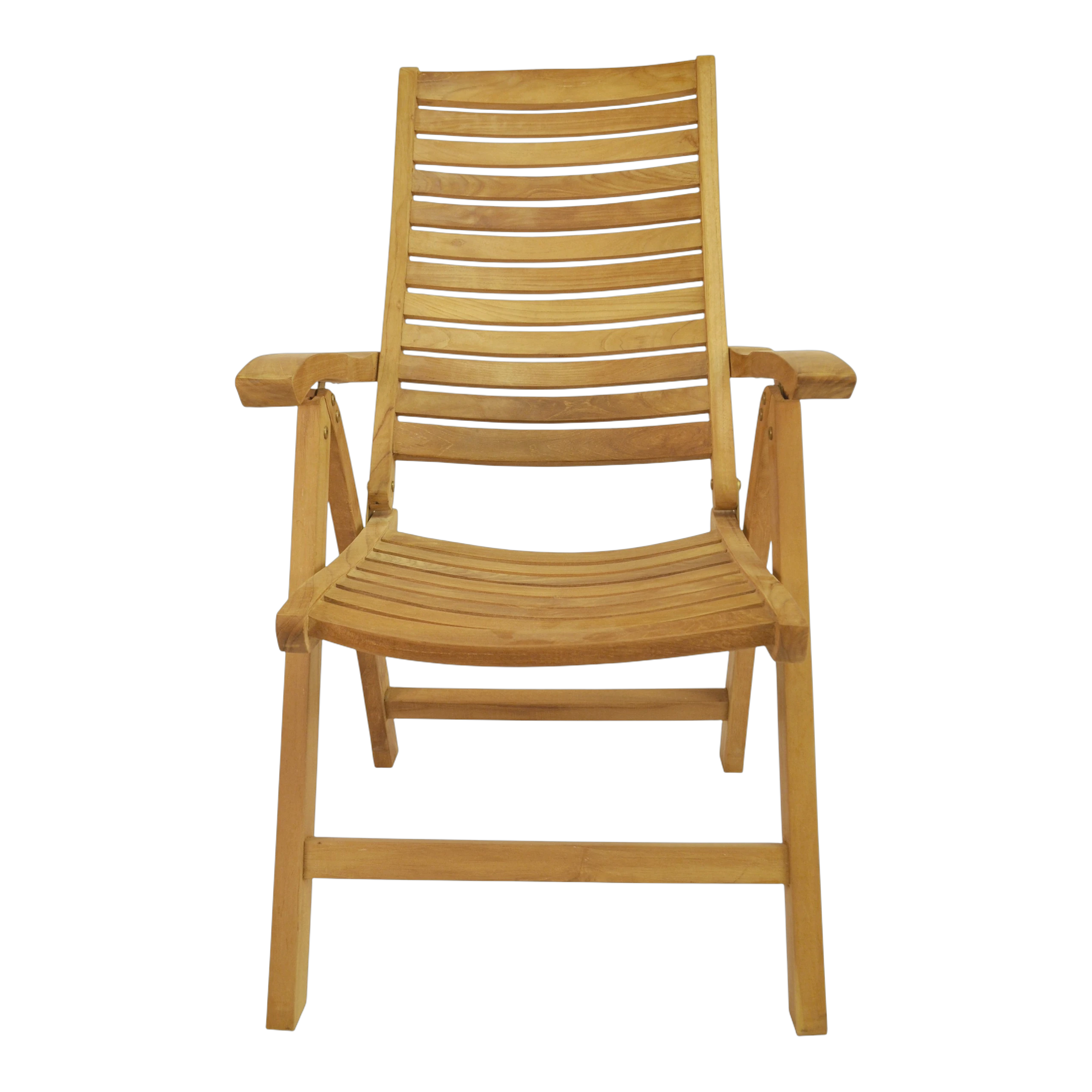 The Carina Five-Position Reclining Chair is easily adjusted from an upright dining position to a relaxed reading position to a reclined position to suit your pleasure. The chairs also folds easily for moving and storing so you can accommodate guests when you need to and hide the set when you don’t. With a 5-position adjustment, our recliners are very comfortable and versatile. A simple ratchet action makes adjustment quick and easy. Made from genuine grade teak, it is sanded smooth without any finish in its natural form and color.
