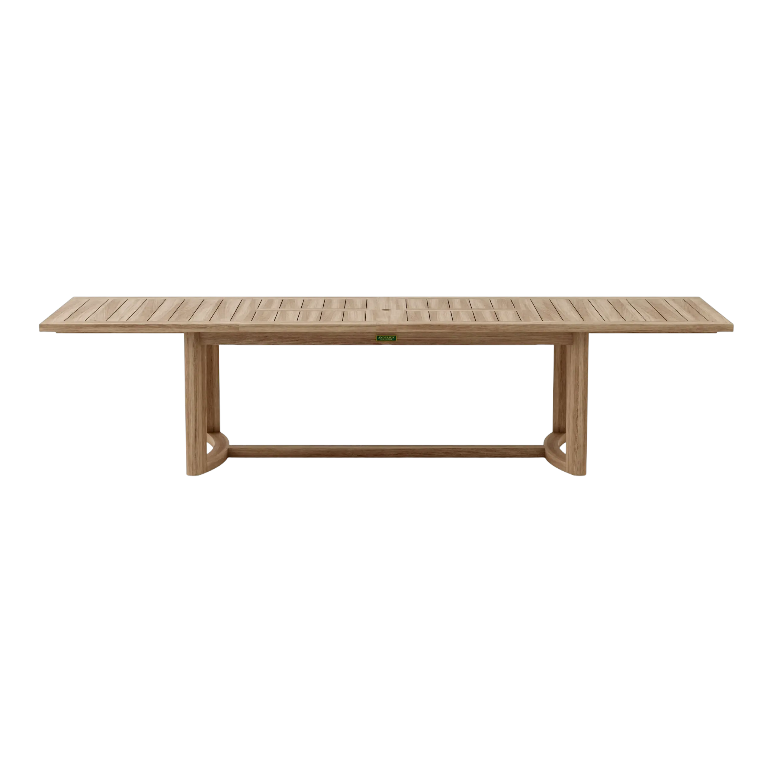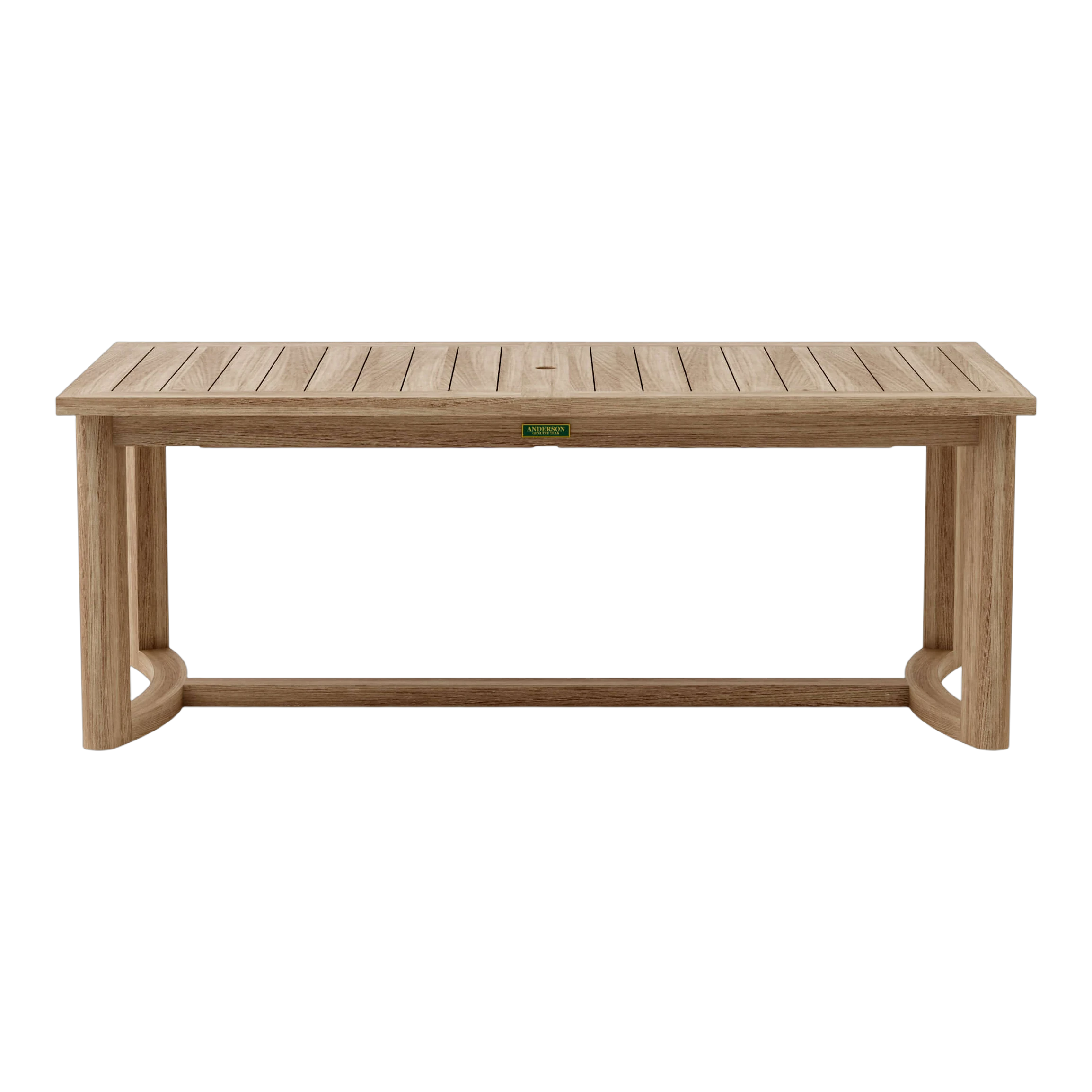 A-Grade Teak Solid WoodUnfinished well sanded kiln driedExtension Table with pop up leafCan be extended with one or two leaves2″ Umbrella Hole with Wooden PlugOutdoor Weather ResistantFits 10 to 12 Chairs88″ in length when closed or 136″ when fully opened.