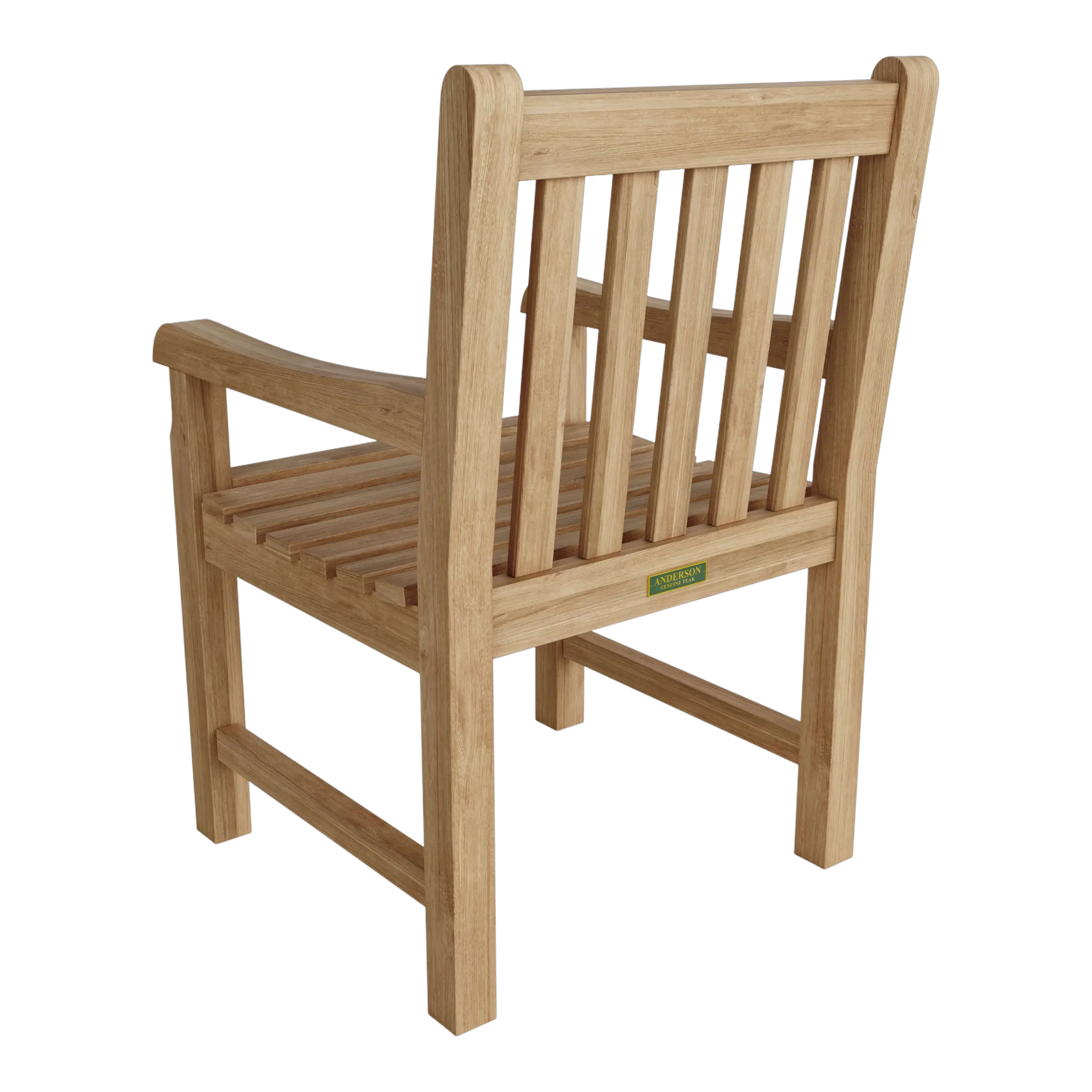 traditional style-dining armchairTeak WoodEstimate weight capacity: 300 lbsCushion is not includedAnderson TeakTeak outdoor furniture with premium quality products.