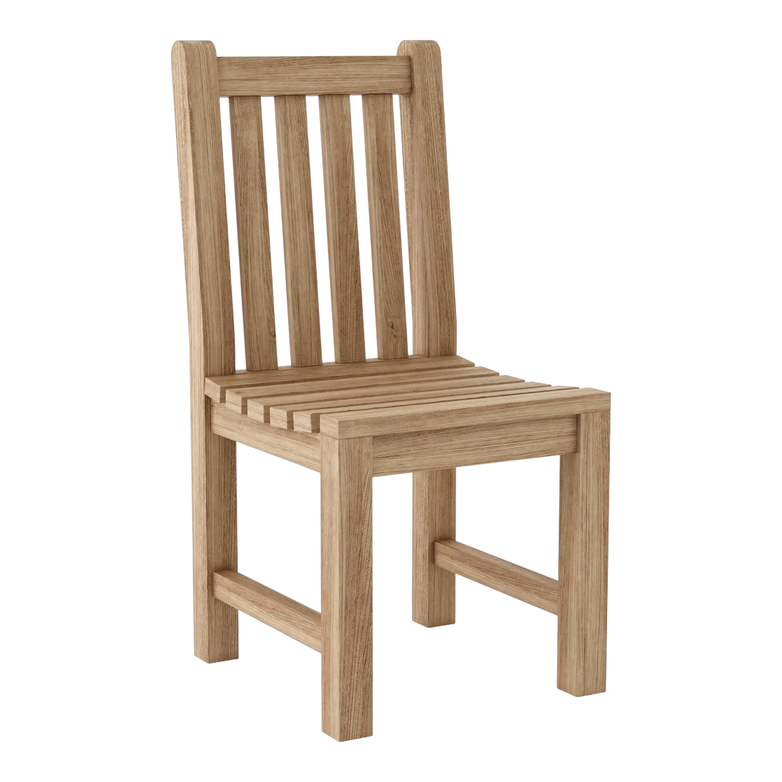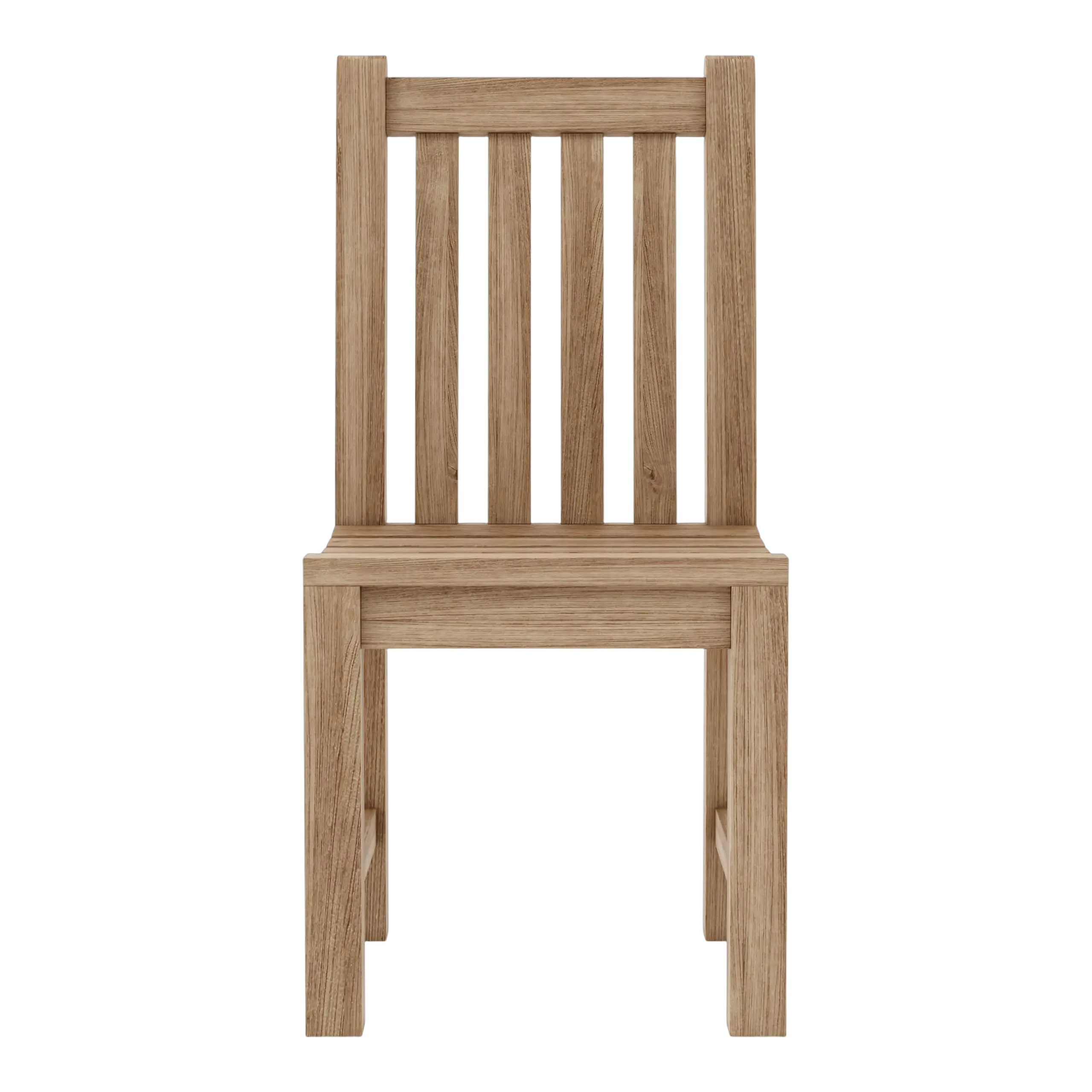 This “Classic Dining Chair” will never go out of style but quietly blends with any décor or setting. The seat is sculpted with a dip in the center for added comfort and is very sturdy with a quality build. Made with kiln-dried, Grade-A Teak wood sanded smooth and unfinished, it is the perfect material for weathering the outdoors. This is a beautiful and functional piece of furniture for your patio or terrace. Place this chair in your backyard with a dining table for an outdoor dining experience. Quality made to last.