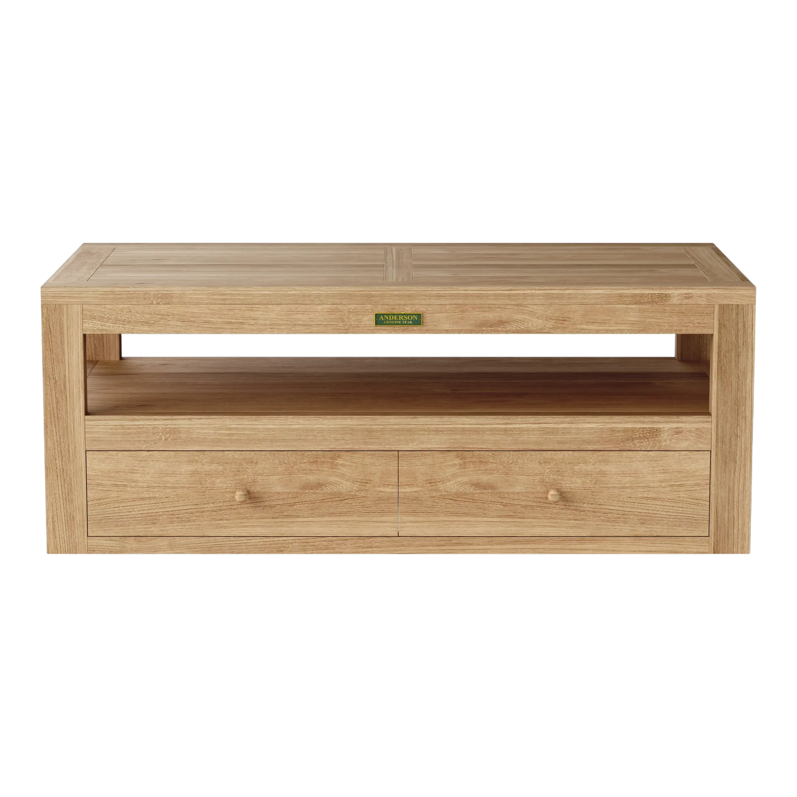 The Copacabana Rectangular Coffee Table, as part of the Copacabana Deep Seating Set features a sleek modern design constructed from premium unfinished solid teak wood. The perfect Coffee Table for the yard, couch, or living room, quality teak wood will always ensure outdoor sustainability through wind, rain, hail or shine. Features two drawers with round door knob.Â