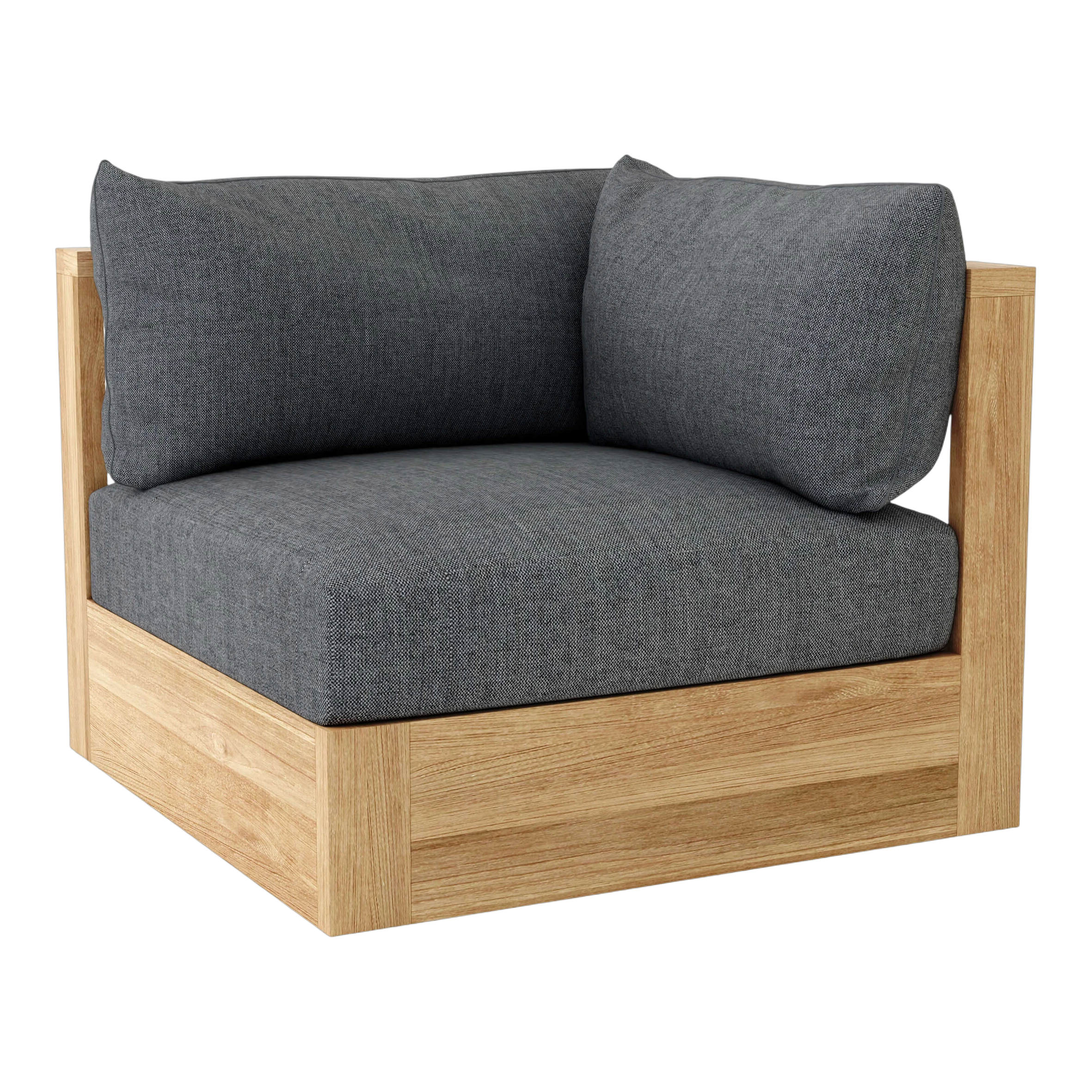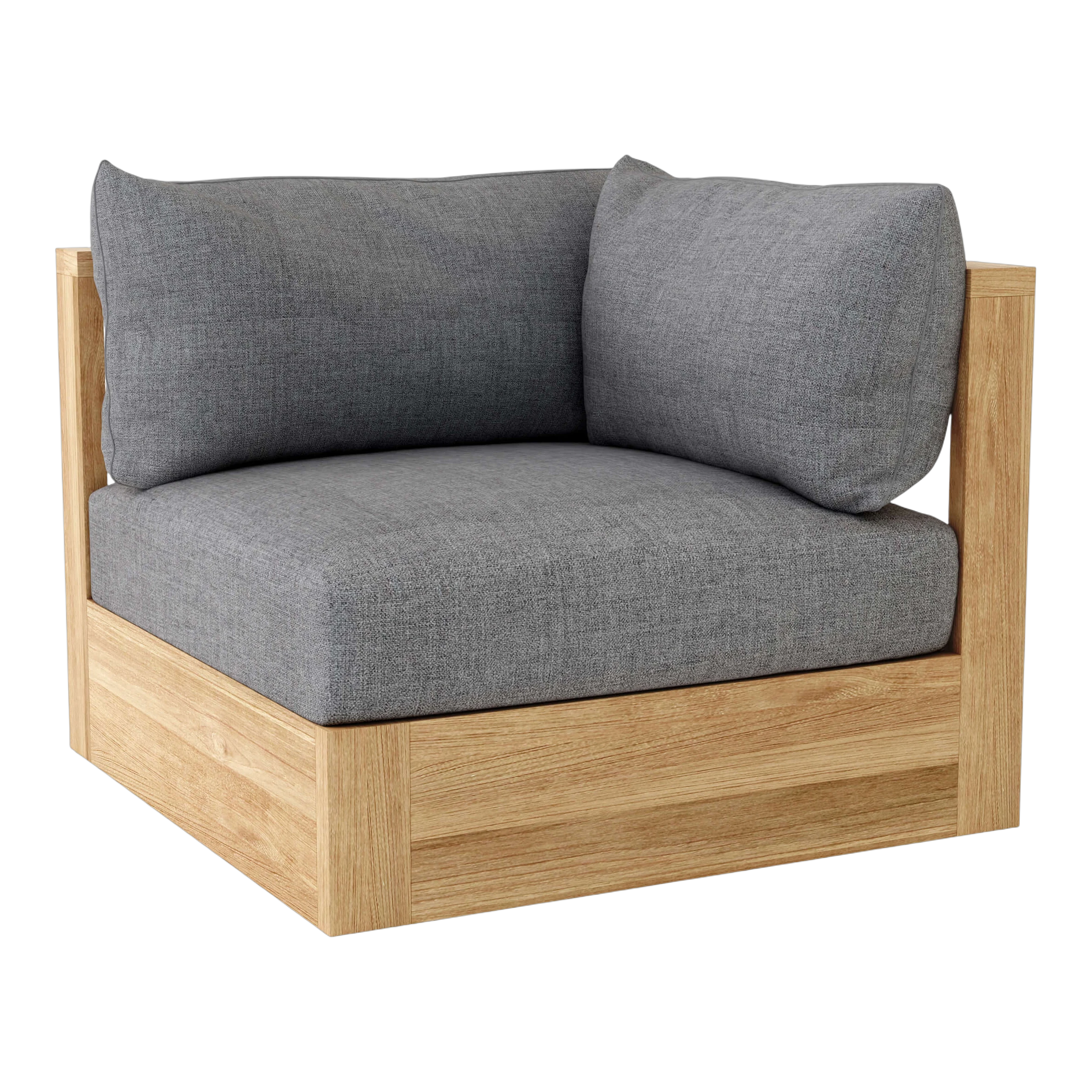 Part of the Copacabana Deep Seating Collection, the Copacabana  Corner Modular can be paired with the Copacabana Left Loveseat, Right Loveseat, or Center Modular to create your own outdoor deep seating set. The Copacabana Deep Seating Collection is a sleek modern designed furniture made of premium teak wood perfect for the outdoor and yard. Includes Sunbrella All-Weather cushion with pattern and color options.