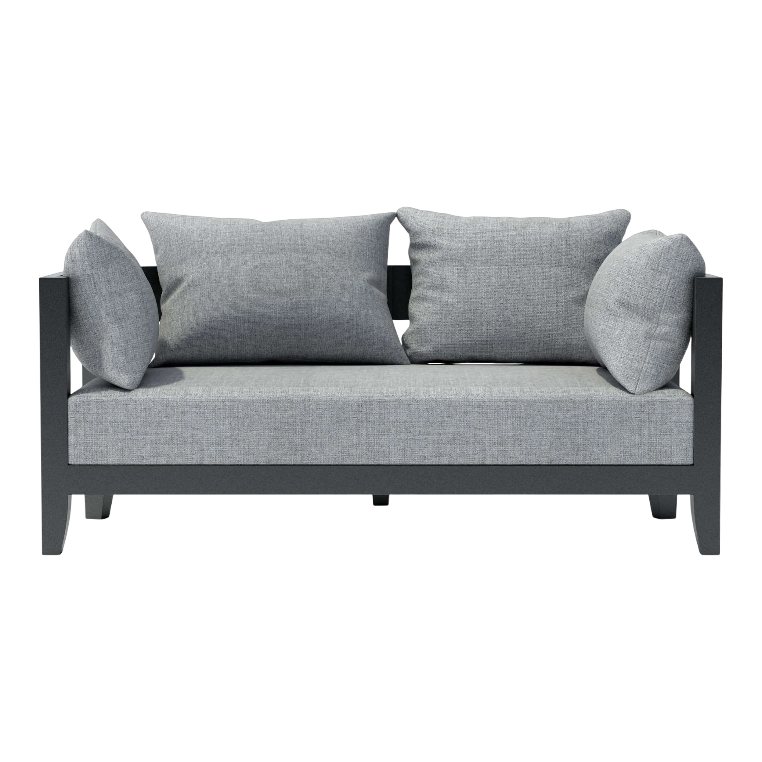 Powder Coated Aluminum FrameCushions IncludedCushion Thickness is 6″QuickShip Cushions available in Cast Slate, Natural, Burgandy, Jockey Red, Teak, Navy, Linen Antique Beige, Linen Champagne, & Forest Green (1 week faster)Custom Order Cushions available in 36 colors from SunbrellaOutdoor Weather ResistantArrives Fully AssembledFrame Color: Dark Grey