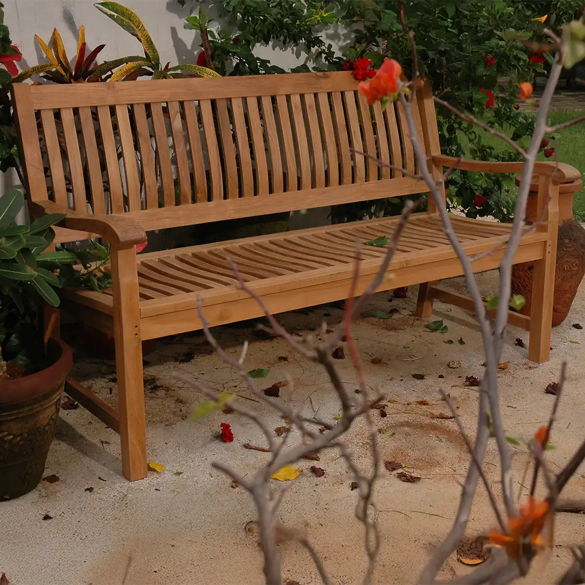 The Del-Amo 3-Seater Bench is a spacious and quality built teak outdoor bench perfect for the yard or patio. With contoured seating and curved back support, we have made subtle but careful design changes to ensure an excellent and comfortable seating experience. Place a single bench under a tree, or use a group of benches and chairs for a complete outdoor collection. The durable teak construction of this heavyweight bench allows it to withstand constant use, making it ideal for parks, shopping centers, or any commercial heavily frequented area. Over time, the wood will weather to a beautiful silver gray patina or occasionally scrub down with soap and water to keep in pristine condition. Made from genuine grade teak, it is sanded smooth without any finish in its natural form and color.