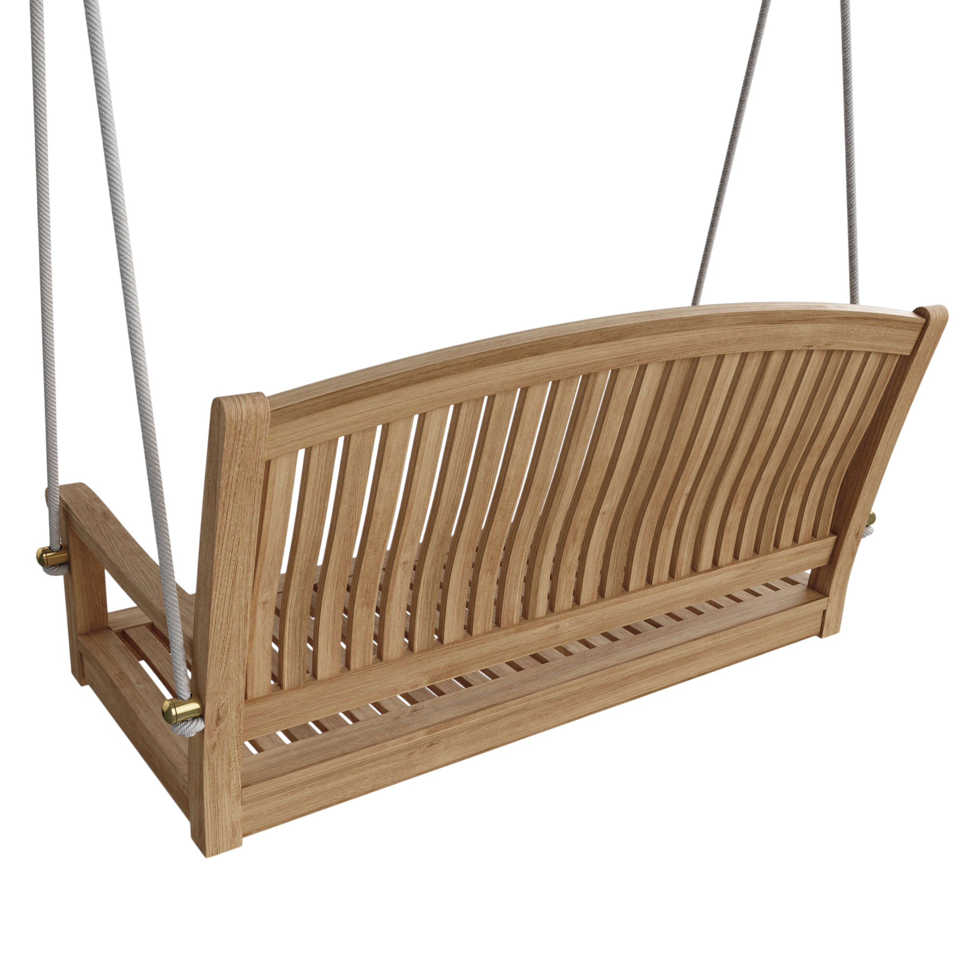 This Del-Amo 48” Swing Bench is now available for the comfort of the outdoors. Constructed from premium grade solid teakwood for long lasting strength and beauty, the swing bench can be placed under the big tree of your home or any custom hooked area for an idyllic outdoor experience. Over time, the wood will weather to a beautiful silver gray patina or scrub down with soap and water to keep in pristine condition. Add Sunbrella All-Weather Cushions, a water repellent material that prevents mildew, mold, and discoloration for additional seating comfort. Includes a 25 foot white rope.