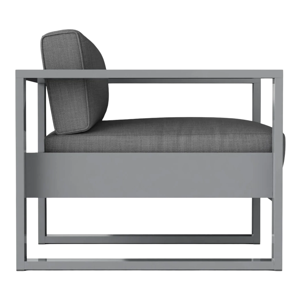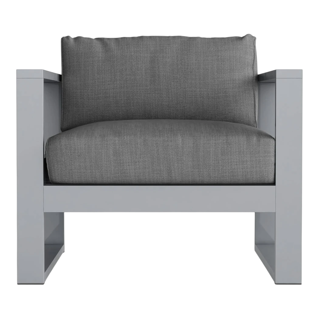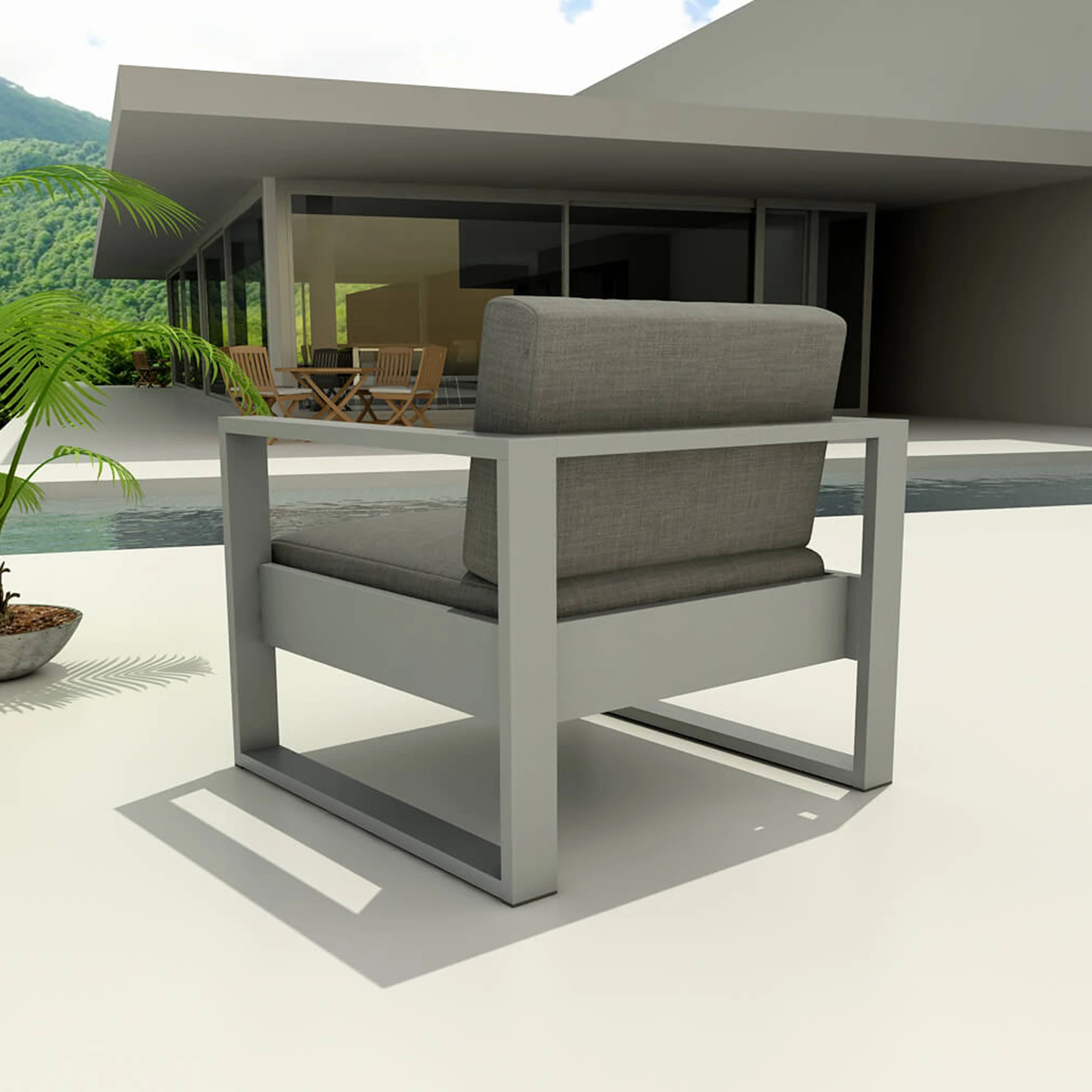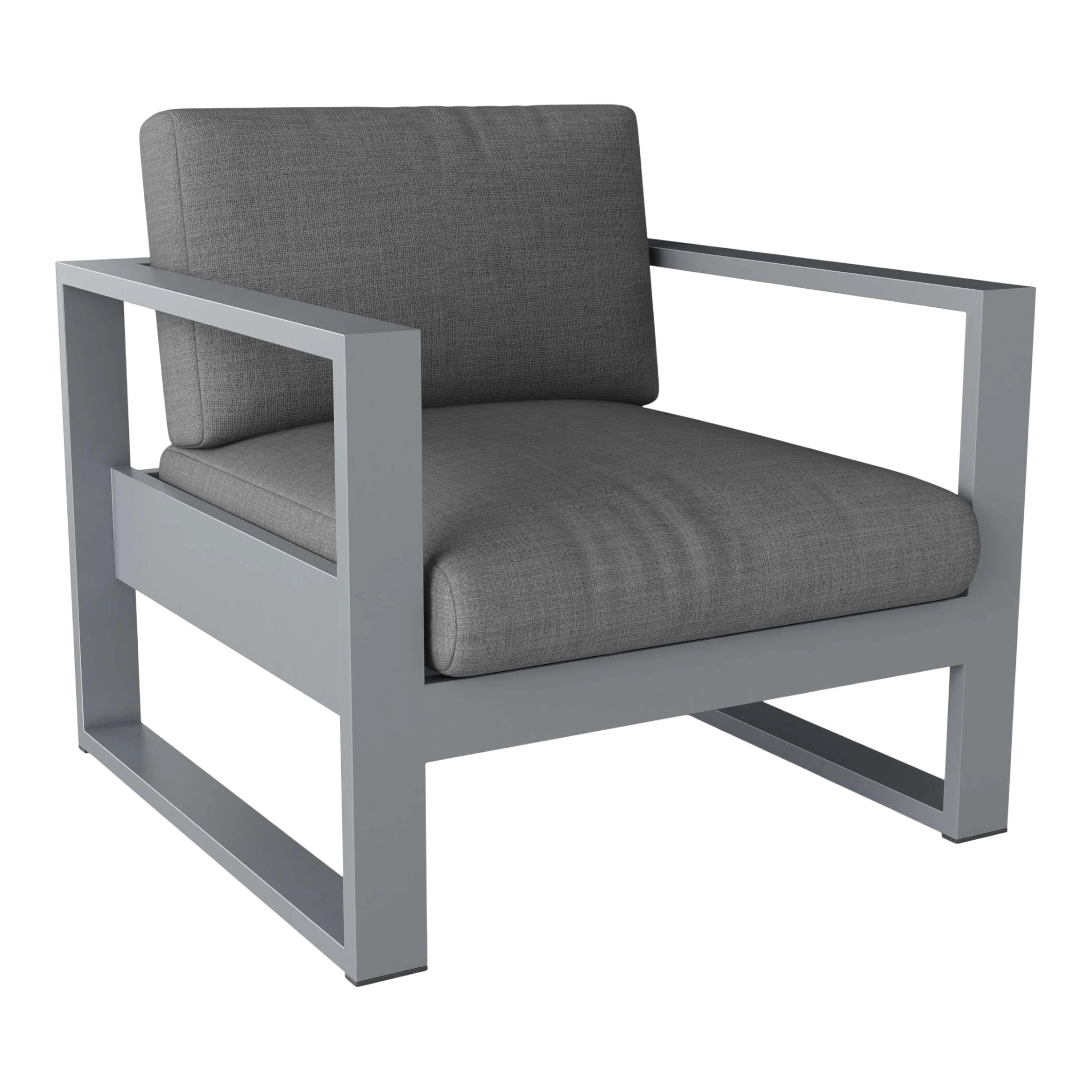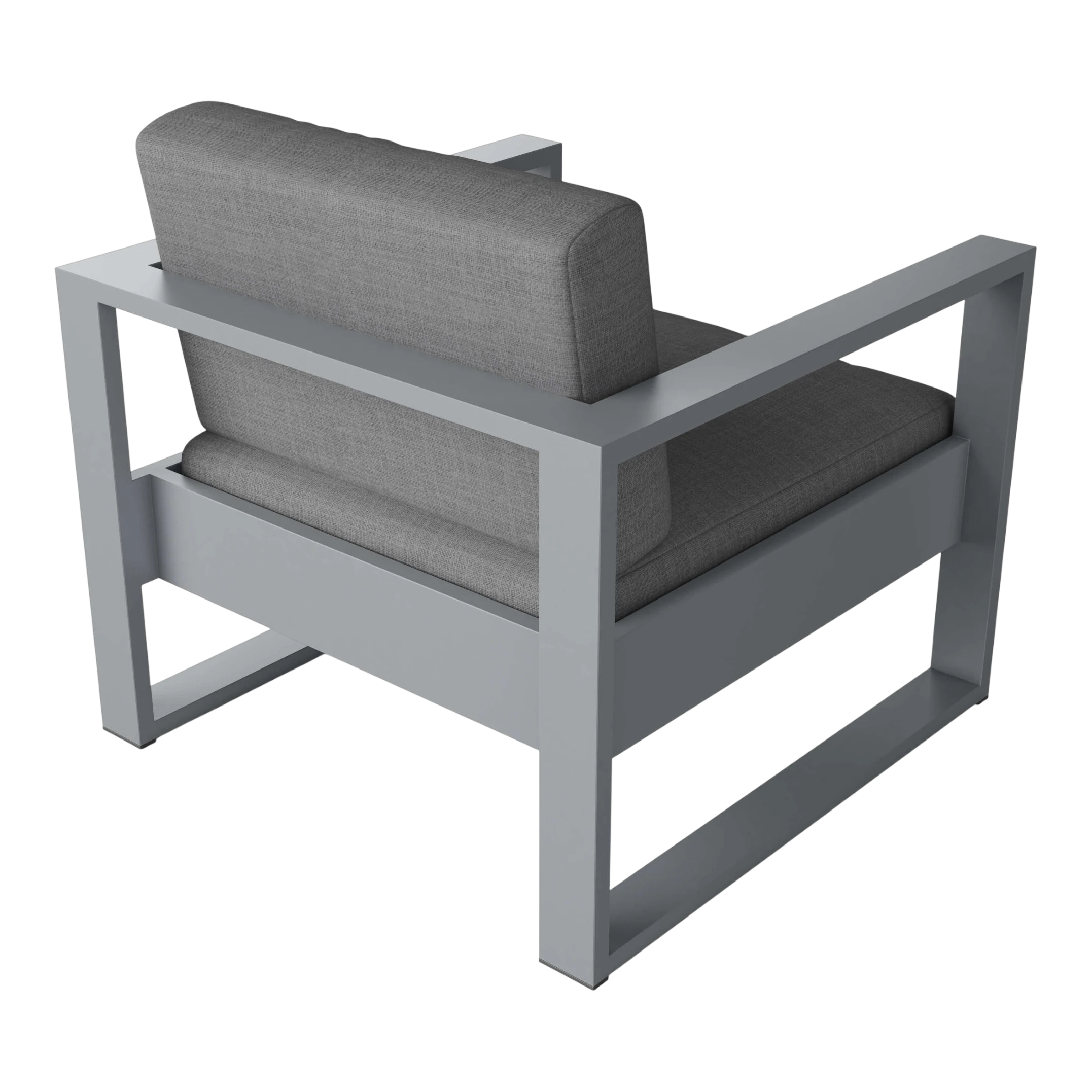 Streamlining and modernizing your backyard has never been so seamless with the Lucca Deep Seating Armchair. Sleek, modern, and durable, this Armchair is machine crafted with quality and substance featuring a 2 mm thick Aluminum Frame finished in high quality powder coating. Enjoy the Lucca Deep Seating Armchair singly for private use or as part of the Lucca Deep Seating Set by adding the Lucca Deep Seating center and corner chairs, the right and left loveseat, the Lucca coffee table, ottomans and Lounger. Features Non-Marking Black Plastic Foot Caps. Cushion pattern and color choice included. Be sure to contact your representative.