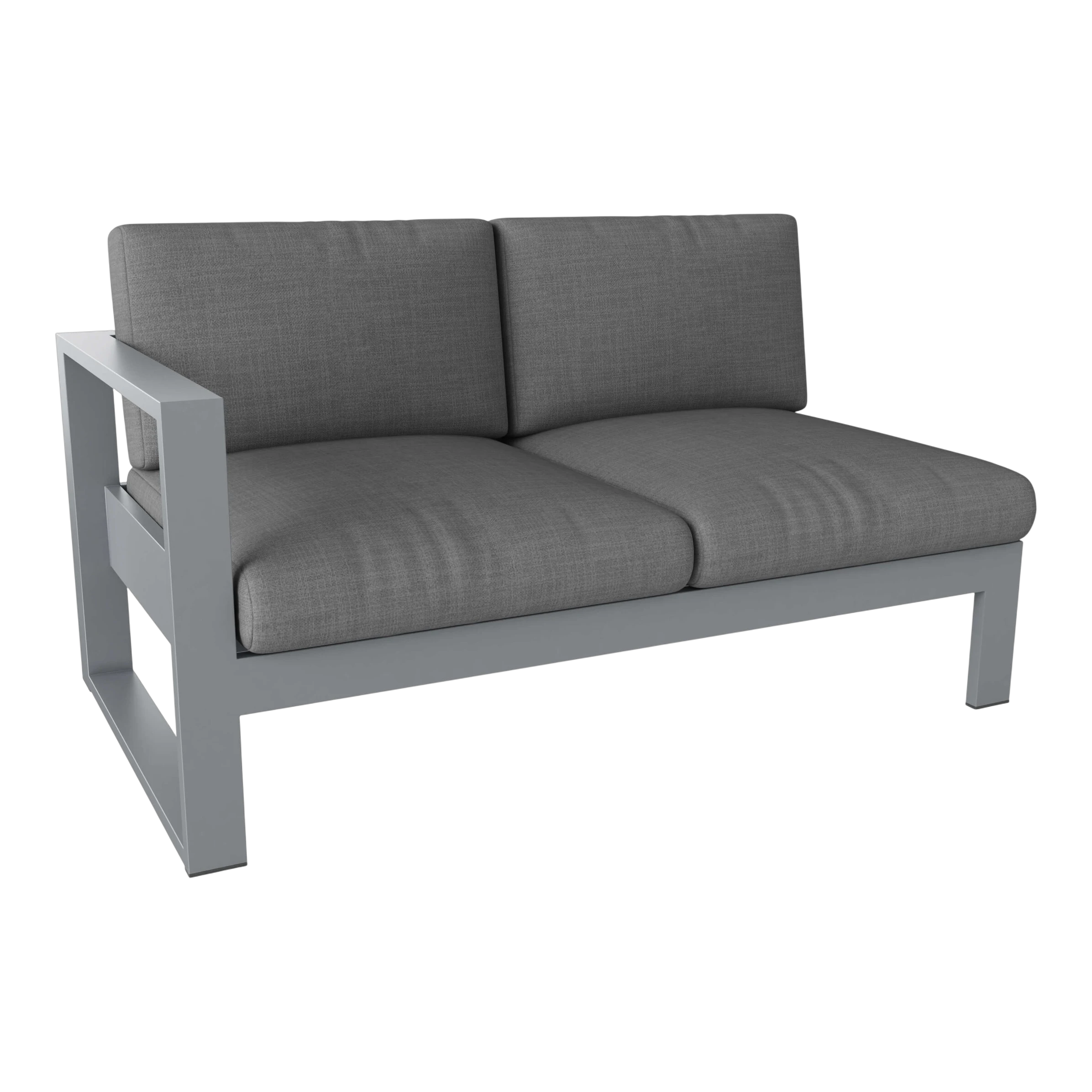 Streamlining and modernizing your backyard has never been so seamless with the Left Lucca Loveseat. Sleek, modern, and durable, the Lucca Deep Seating Right Loveseat is machine crafted with quality and substance featuring a 2 mm thick Aluminum Frame finished in high quality powder coating. As part of the Lucca Deep Seating Collection, feel free to mix and match other pieces to create your own conversational piece by adding additional chairs, sofas, coffee tables, or ottomans. Features Non-Marking Black Plastic Foot Caps. Cushion pattern and color choice included. Be sure to contact your representative.
