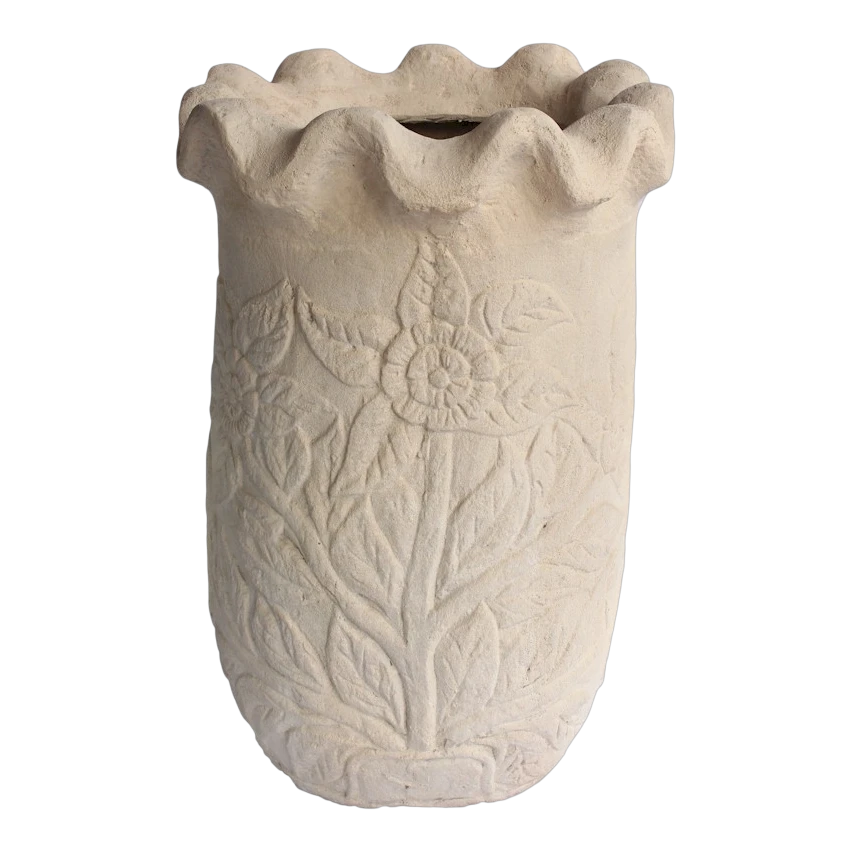 The Marcella Planter will bring your prized flowers to life. The floral relief is reminiscent of ancient artisans’ work of the past. Created of cast limestone for durability and stability for indoor or outdoor setting. Drainage hole can be drilled free of charge. Please specify when ordering.