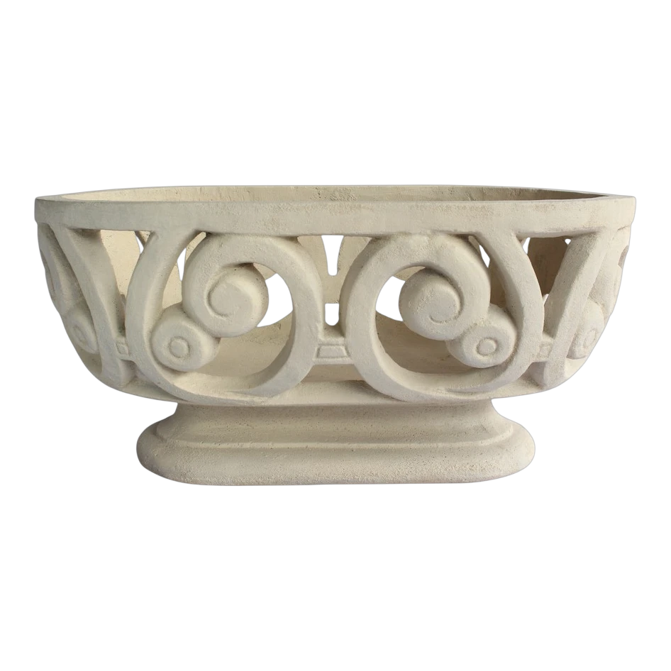 The Milano Oval Planter is a decorative planter that can be displayed by itself or to feature fresh fruits, pine cones, or other decoratives to accent your kitchen, fireplace, hearth or patio that will be sure to be a conversational piece. Created by our artisan of cast limestone for elegance to last for generations. Drainage hole can be drilled free of charge. Please specify when ordering.