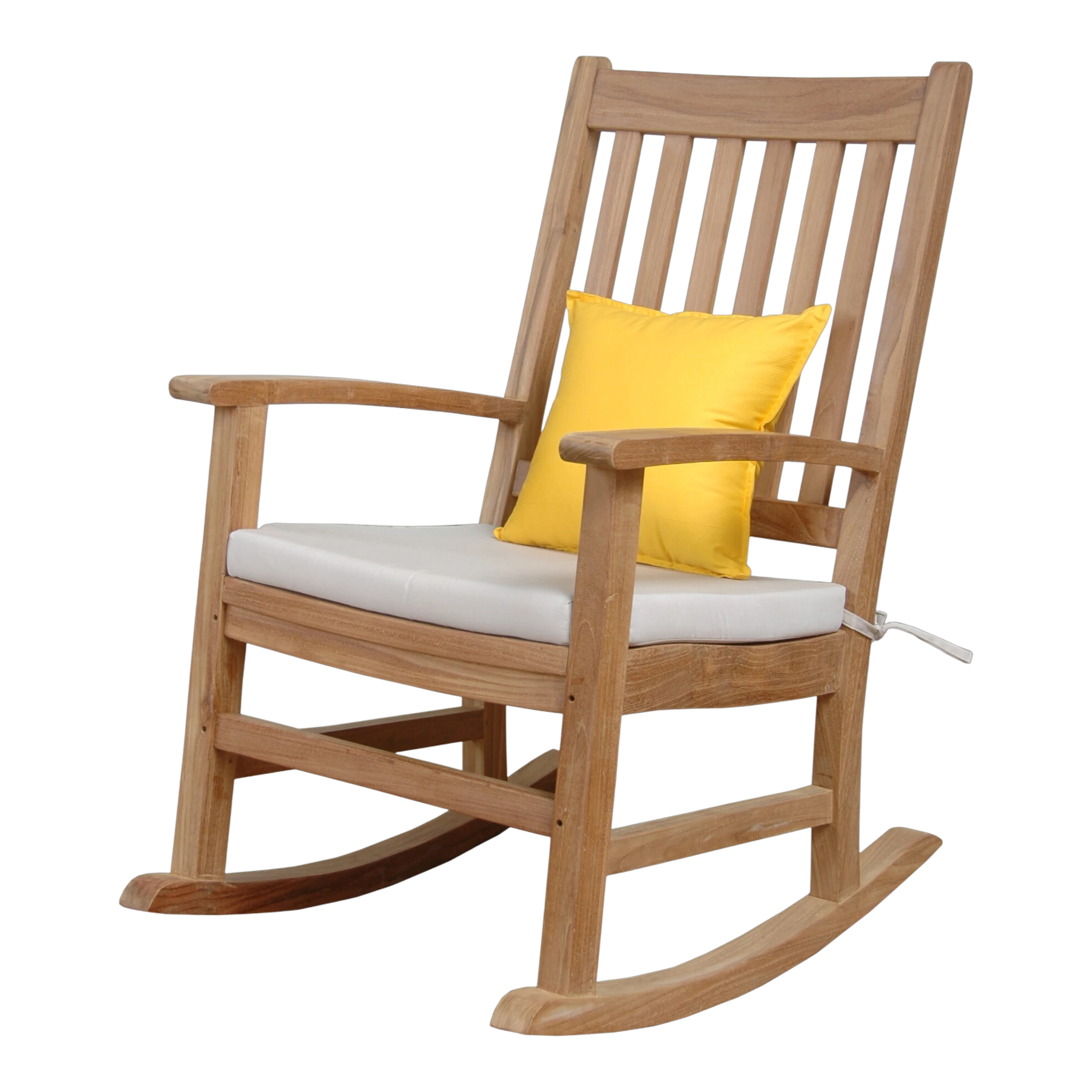 With its classic style, our Palm Beach Rockers is the comfortable rocker that will stay on your porch year round without being out of style. Arrives knock down with easy assembly, cushion and throw pillow sold separately. Made of solid teak wood finished in a waterbased sealer, its the perfect material for weathering the outdoors.