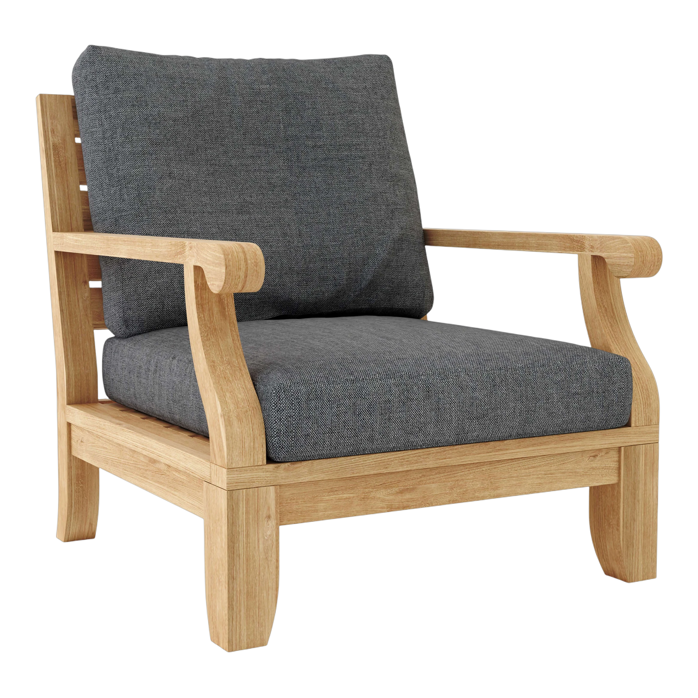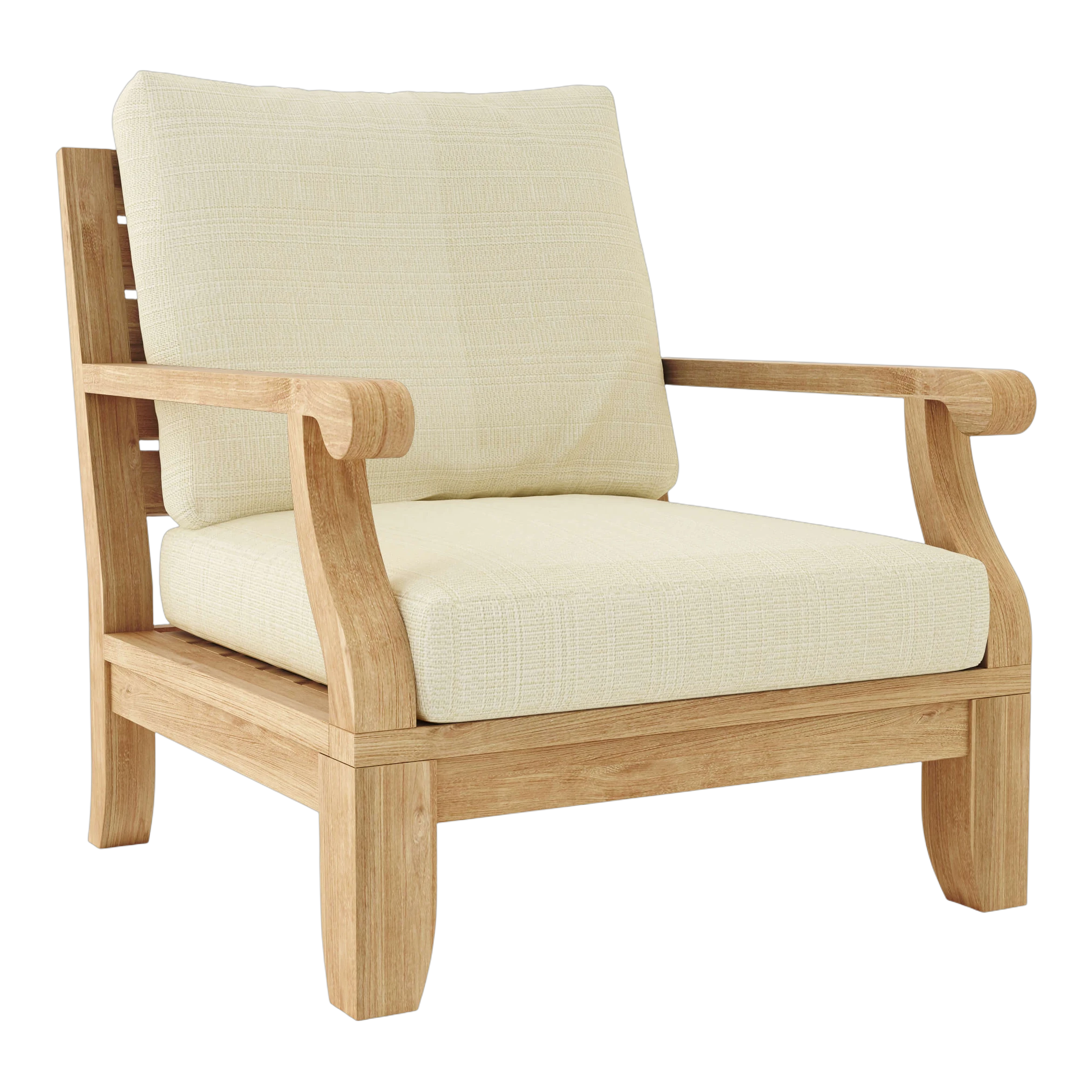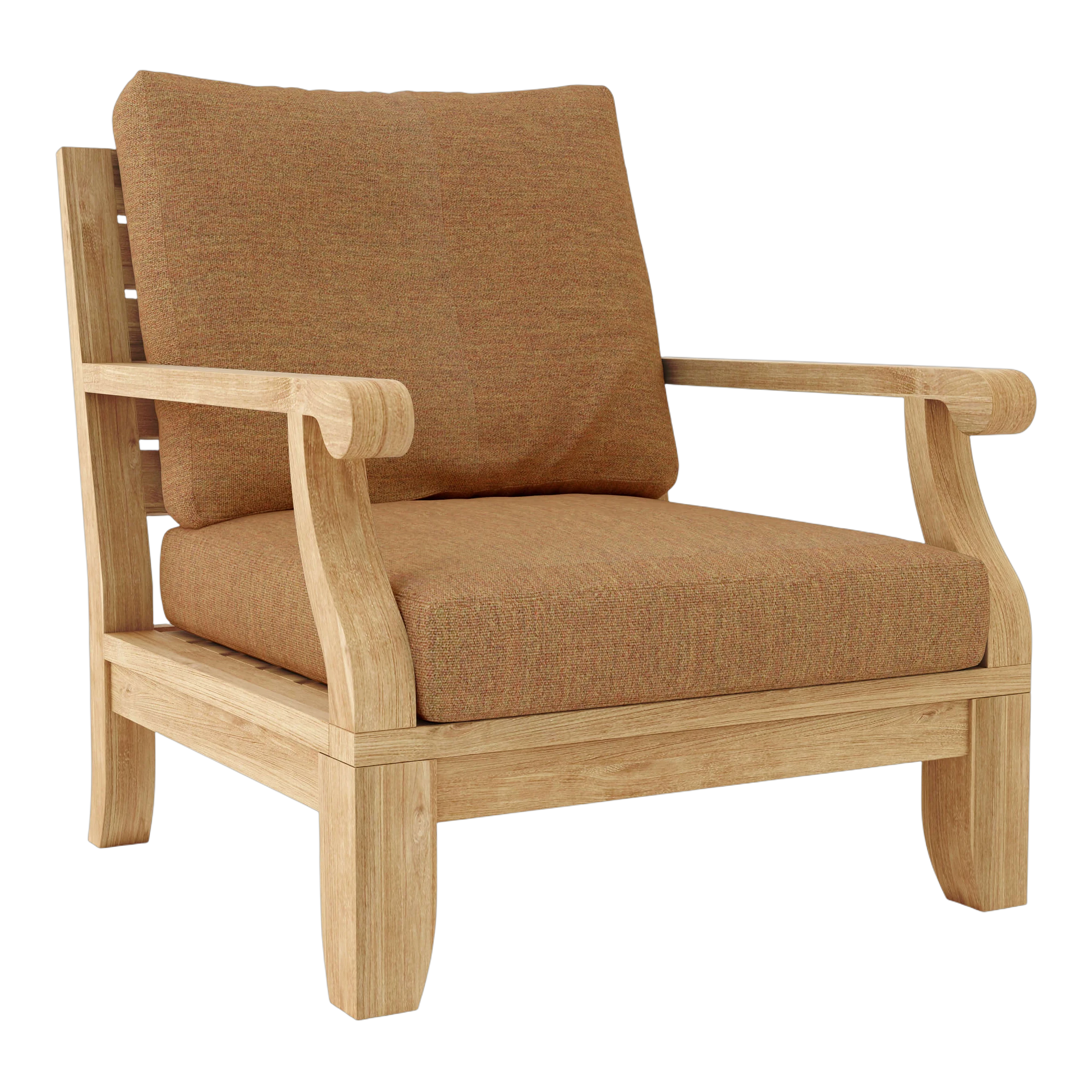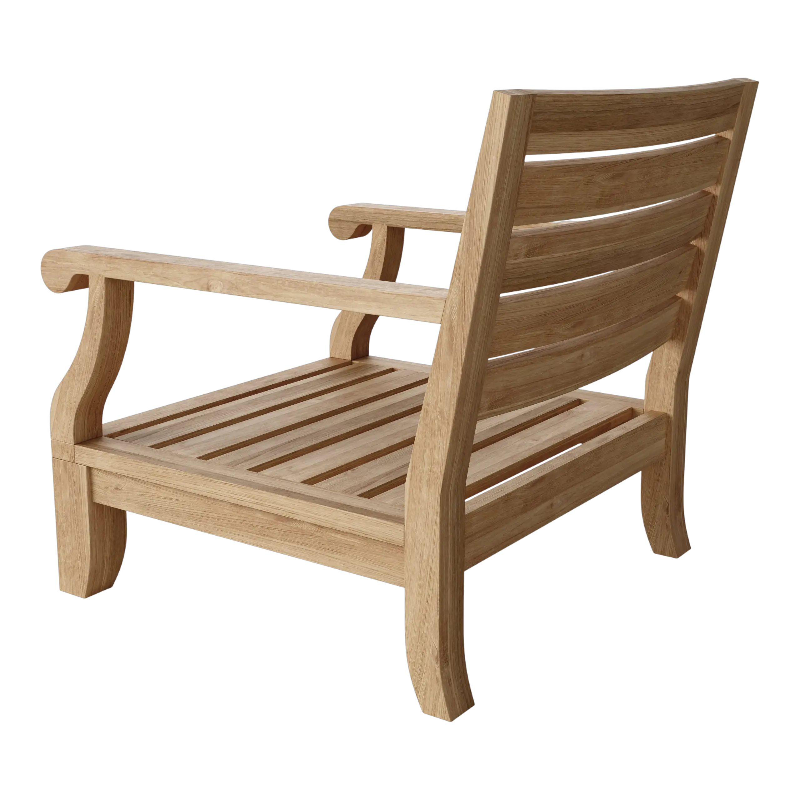 Riviera Deep Seating ArmchairTeak WoodEstimate weight capacity: 300 lbsAnderson Teakcomfortable cushions that will last outdoors without mildew, and minimal discoloration.QuickShip Cushions available in Natural, Burgandy, JockeyRed, Teak, Navy, Linnen Antique Beige, Linen Champagne, & Forest Green (1 week faster)Custom Order Cushions available in 36 colors from SunbrellaTeak outdoor furniture with premium quality products.
