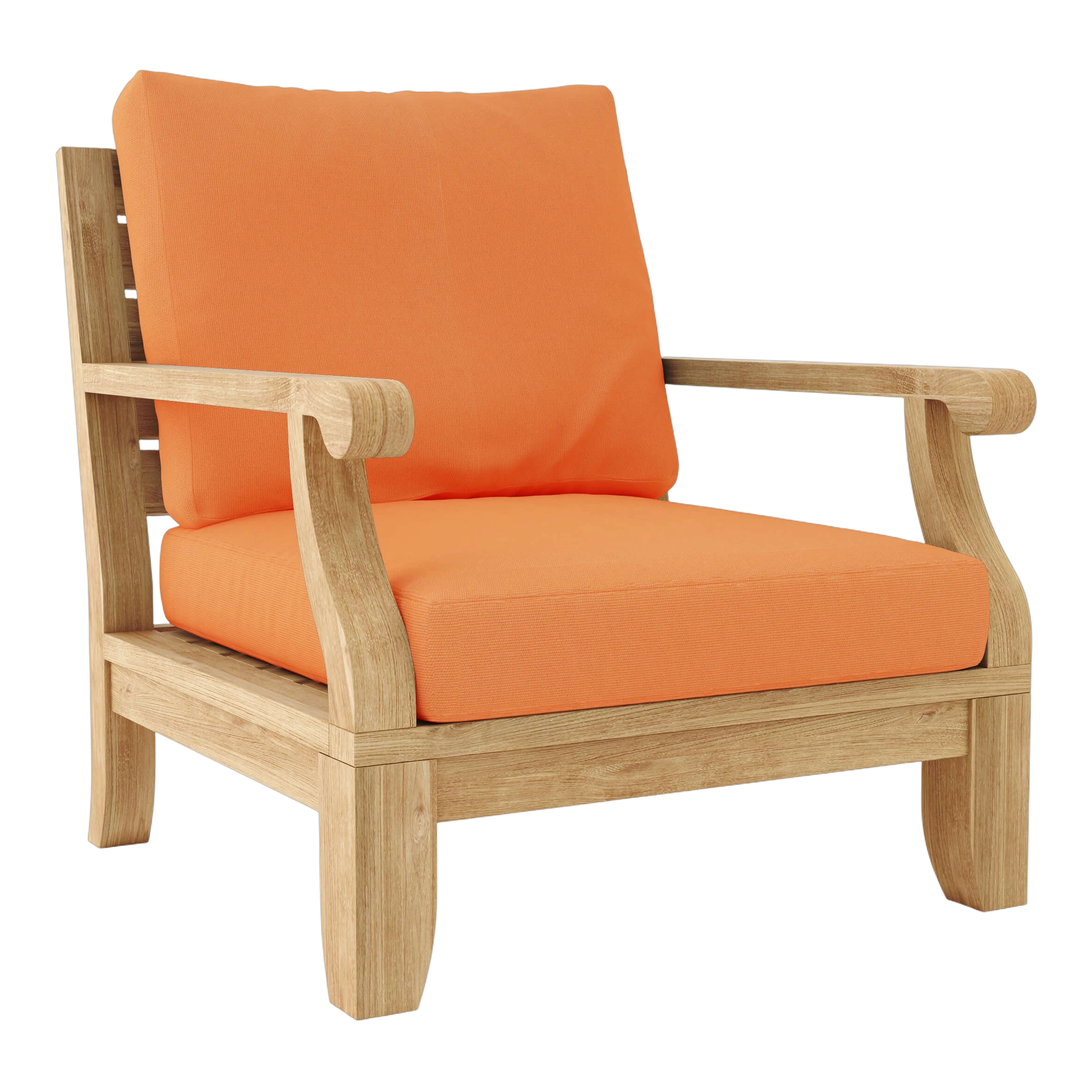 The Riviera Modular Armchair is a standout piece of furniture that blends seamlessly with any decor of your home and yard. At first glance, its considerable size and quality built frame is apparently noticeable complementing its stylish curved design and armchair whorl. Add other pieces from the Riviera Deep Seating Collection such as coffee tables, couches, ottomans, and chairs, or use individually as a single piece to complement any décor or area. Constructed with Premium Teak wood natural and unfinished, its the perfect material for weathering the outdoors. Includes Sunbrella All-Weather cushions 27” deep and 6” thick from a variety of fabric pattern and color options.