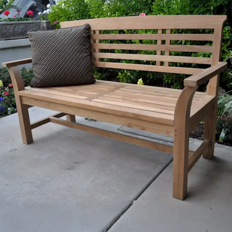 BenchTeak WoodEstimate weight capacity: 500 lbsCushion is not includedAnderson Teakbeautiful Japanese style benchCushions (optional) are made of Sunbrella fabric, a water repellent material, preventing mildew and fadingQuickShip Cushions available in Natural, Cast Slate, Linen Antique Beige, and Cast CharcoalTeak outdoor furniture with premium quality products. Â