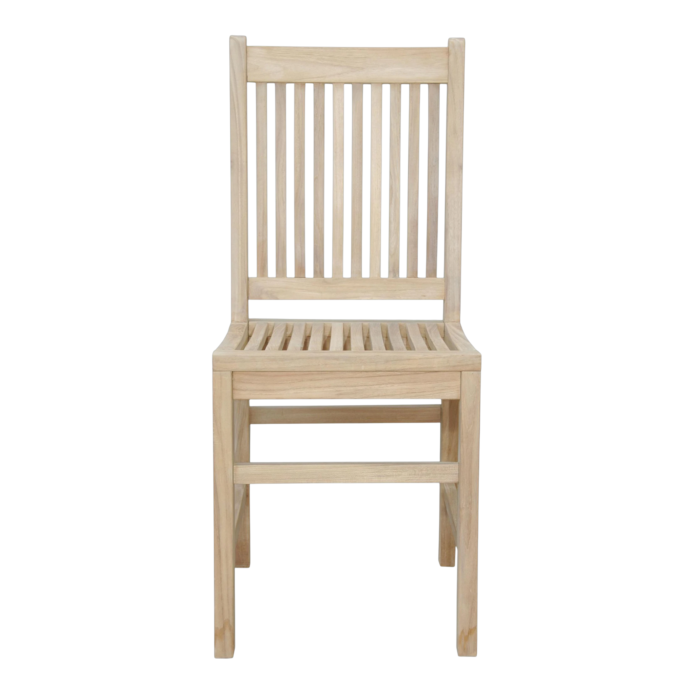 This Saratoga Side Chair designed for restaurant and café purposes is an economical, yet durable and comfortable enough for sitting with family and friends for hours. It is generously sized for added comfort and handsomely crafted in solid construction of plantation kiln dried teak, which makes this chair a wise choice for your dining needs. Treated with a waterbase coat and sealer, it ensures added protection againts the weather elements and outdoors. Add any table of your choice for a complete outdoor dining set. Be sure to add cushions from All-Weather Sunbrella Fabrics for even more comfort.