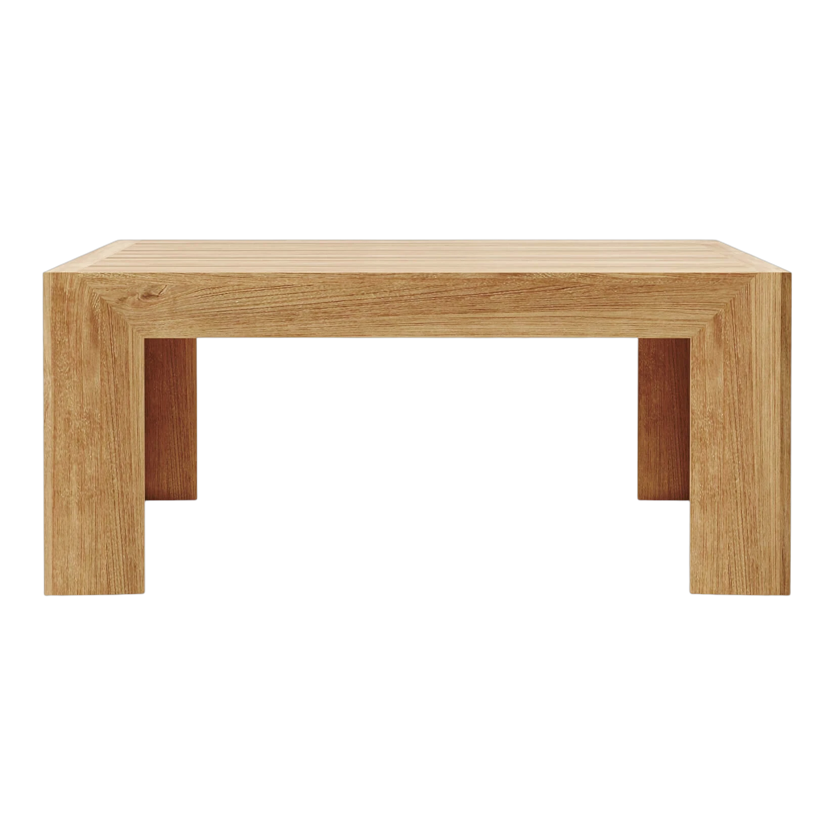 A sturdy coffee table with large wide slats the Smyrna coffee table made of premium unfinished teak is a lovely addition for the living room, home or yard. Sturdy and quality built this coffee table is perfect for outdoor use, resisting the elements of rain, wind, or shine. Overtime it will age to a silver grey patina, or scrub down with soap and water to keep in pristine condition. As part of the Smyrna Collection this coffee table pairs perfectly with the Smyrna Lounge Armchair, Sofa, Lounger, Dining Table and Dining Armchair. Arrives fully assembled.