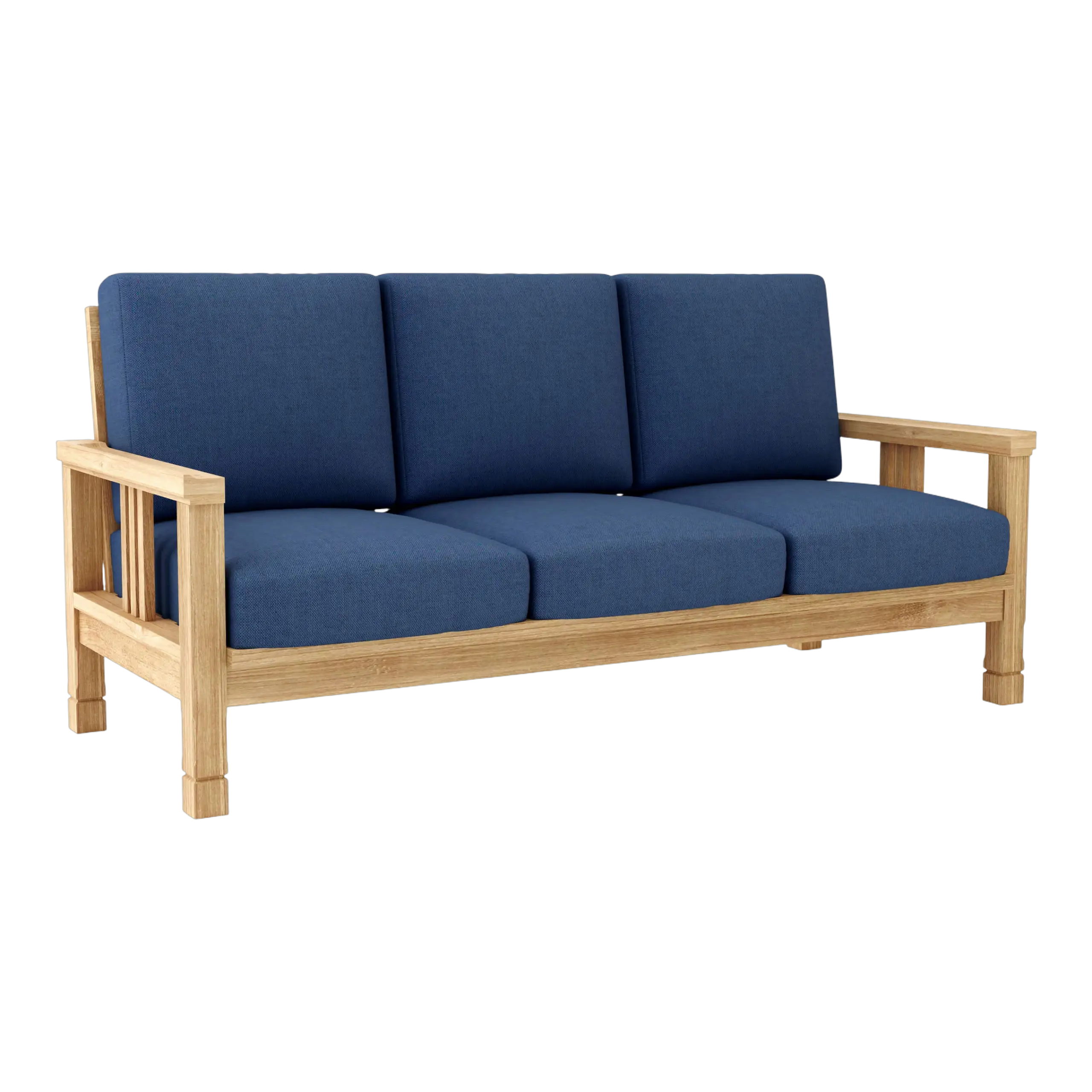 Left over premium teak wood treated with water-base sealerChapman CollectionTeak WoodEstimate weight capacity: 700 lbsKiln-dry processInner cushion is made of foam with a Dacron wrap. Total thickness is 6″QuickShip Cushions available in Natural, Burgandy, JockeyRed, Teak, Navy, Linnen Antique Beige, Linen Champagne, & Forest GreenCustom Order Cushions available in 36 colors from SunbrellaChapman Collection: Another Teak collection by Anderson.  We use our left over premium teak wood from Anderson and redesign the furniture for less expensive piece. Treated with water based seal. Â