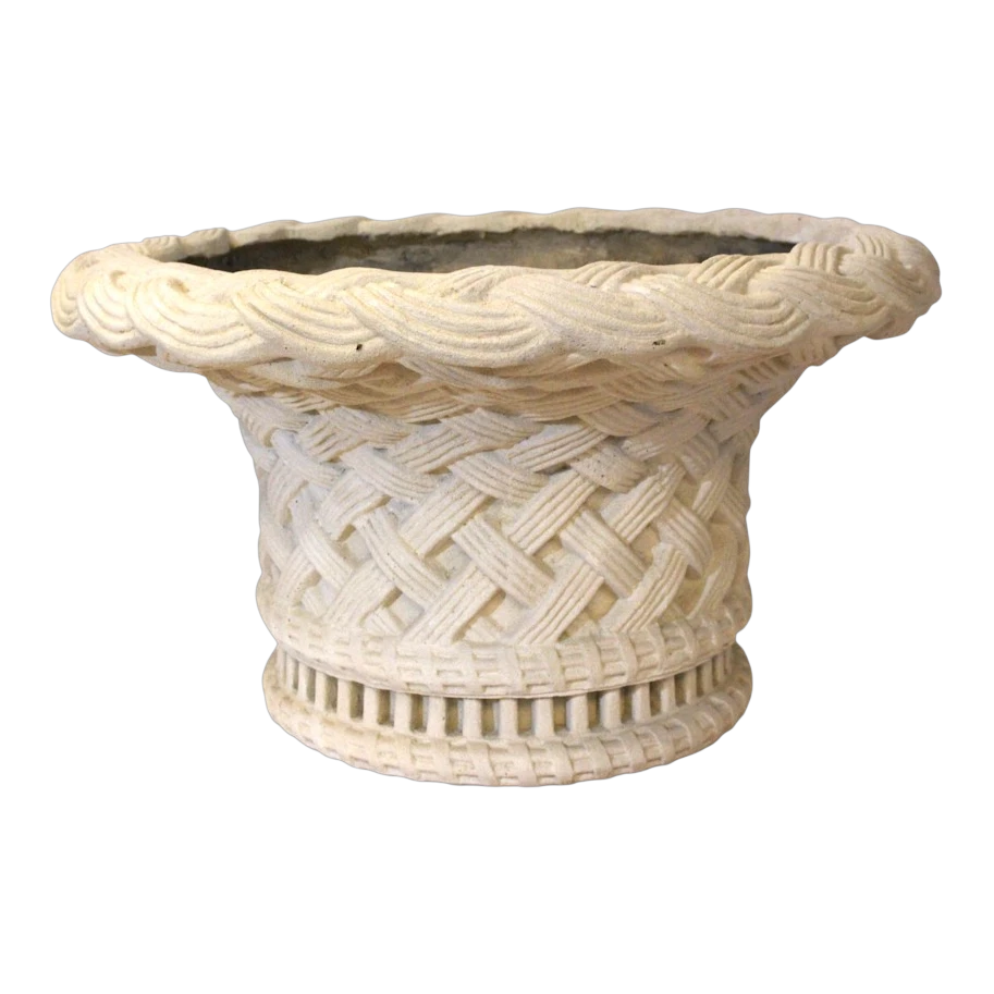 The ever popular woven design round pot with oversized rim will transform any garden back to the Victorian era. The Victoria Planter is one of our larger planters which are perfect for larger prized topiary designs. Made of cast limestone to provide durability for the intricate design. Drainage hole can be drilled free of charge. Please specify when ordering.