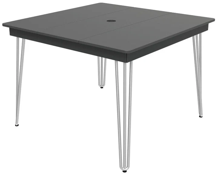 With a unique three-slat top design combined with classic Hairpin Legs, the Square and Long HIP Dining Tables were designed for modern day lifestyles. Fusion option allows for a multitude of leg/top color combinations, made to match the HIP Dining Chair and Benches. Choose from three powder coated aluminum frame finishes and a multitude of EnviroWood® top colors to create a distinctive outdoor living experience.
