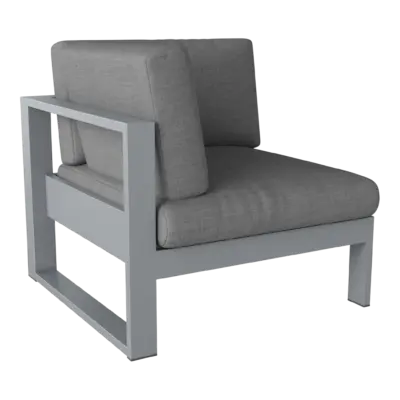 $1,815.002 mm thick Aluminum Frame with High Quality Powder CoatingFinishing: Grey 170 Grit Powder CoatingNo Assemble RequiredInner cushion is made of foam with a Dacron wrap. Total thickness is 6″Sunbrella Cushion includedSeat High without cushion is 11′ and with cushion is 17″QuickShip Cushions available in Natural, Burgandy, JockeyRed, Teak, Navy, Linnen Antique Beige, Linen Champagne, & Forest GreenCustom Order Cushions available in 36 colors from SunbrellaEstimate weight capacity: 300 lbs
