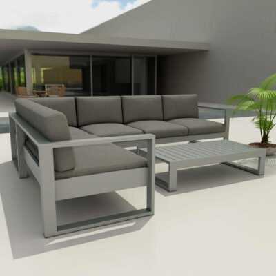 $10,995.004 DS-1001 Lucca Deep Seating Armchair1 DS-1007 Lucca Rectangular Coffee Table1 DS-1004 Lucca Deep Seating Right Loveseat1 DS-1006 Lucca Side Table2 mm thick Aluminum Frame with High Quality Powder CoatingFinishing: Grey 170 Grit Powder CoatingNo Assemble RequiredInner cushion is made of foam with a Dacron wrap. Total thickness is 6″Sunbrella Cushion includedSeat High without cushion is 11′ and with cushion is 17″QuickShip Cushions available in Natural, Burgandy, JockeyRed, Teak, Navy, Linnen Antique Beige, Linen Champagne, & Forest GreenCustom Order Cushions available in 36 colors from Sunbrella
