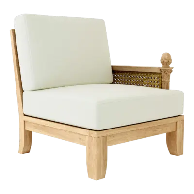 $1,695.00Luxe Deep Seating Sectional/Modular Left ArmchairTeak WoodEstimate weight capacity: 300 lbsAnderson Teakcomfortable cushions that will last outdoors without mildew, and minimal discoloration.QuickShip Cushions available in Natural, Burgandy, JockeyRed, Teak, Navy, Linnen Antique Beige, Linen Champagne, & Forest Green (1 week faster)Custom Order Cushions available in 36 colors from SunbrellaTeak outdoor furniture with premium quality products.