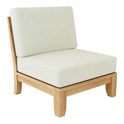 $1,550.00Luxe Deep Seating Sectional/Modular Center ChairTeak WoodEstimate weight capacity: 300 lbsAnderson Teakcomfortable cushions that will last outdoors without mildew, and minimal discoloration.QuickShip Cushions available in Natural, Burgandy, JockeyRed, Teak, Navy, Linnen Antique Beige, Linen Champagne, & Forest Green (1 week faster)Custom Order Cushions available in 36 colors from SunbrellaTeak outdoor furniture with premium quality products.